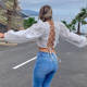 Backless Tie Up Puff Sleeve Vintage Crop Top