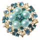 Adjustable Pearl with Austrian Crystal Flower Ring Swiss Blue (Rings Category)