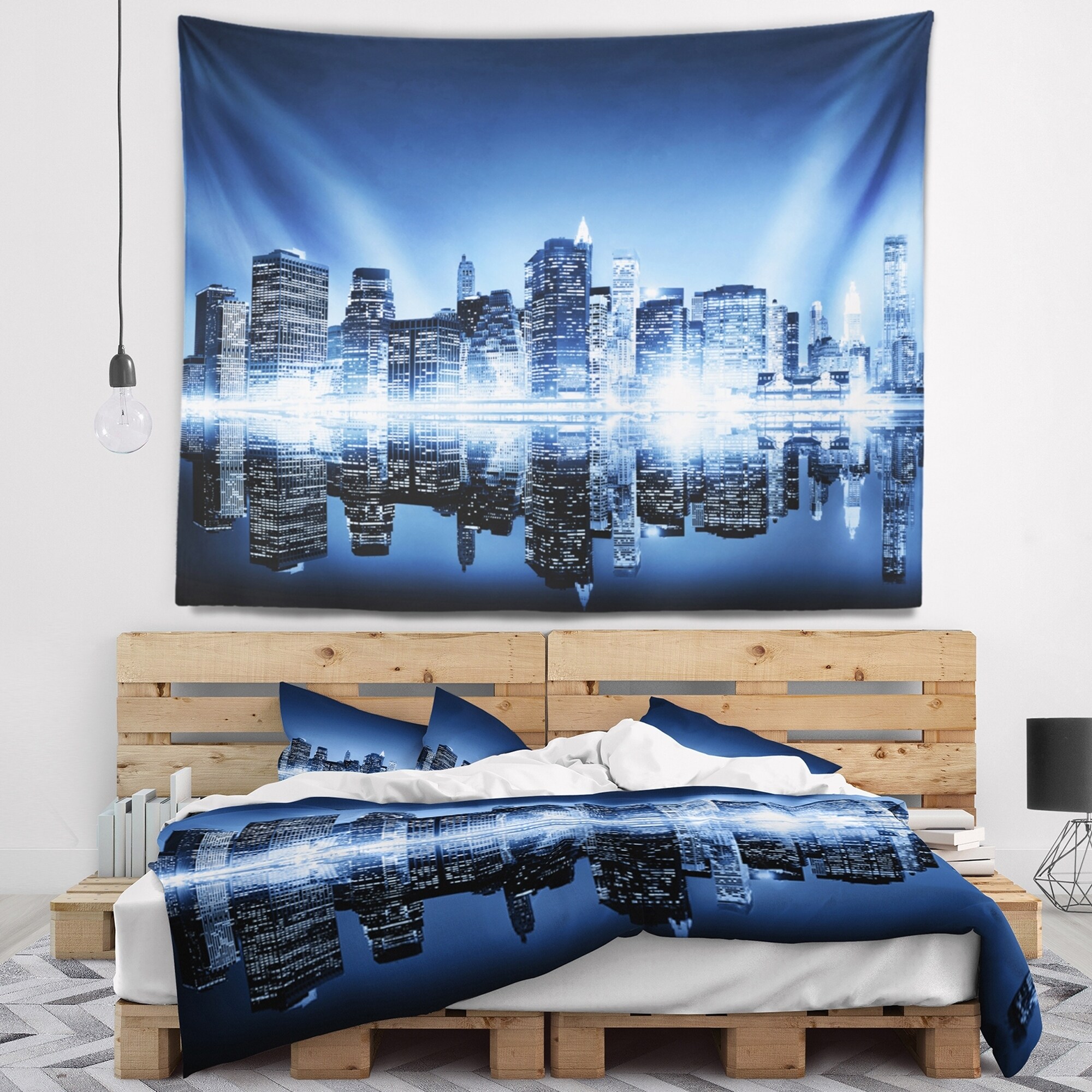 Designart 'Night New York City Mirrored' Cityscape Wall Tapestry