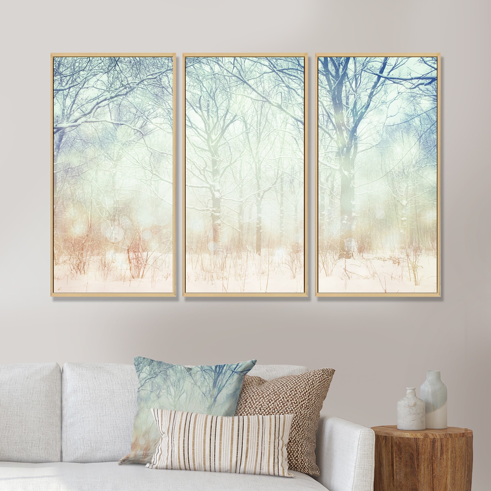 Designart "Winter with Foggy Forest" Landscape Framed Wall Decor Set of 3 - 4 Colors of Frames
