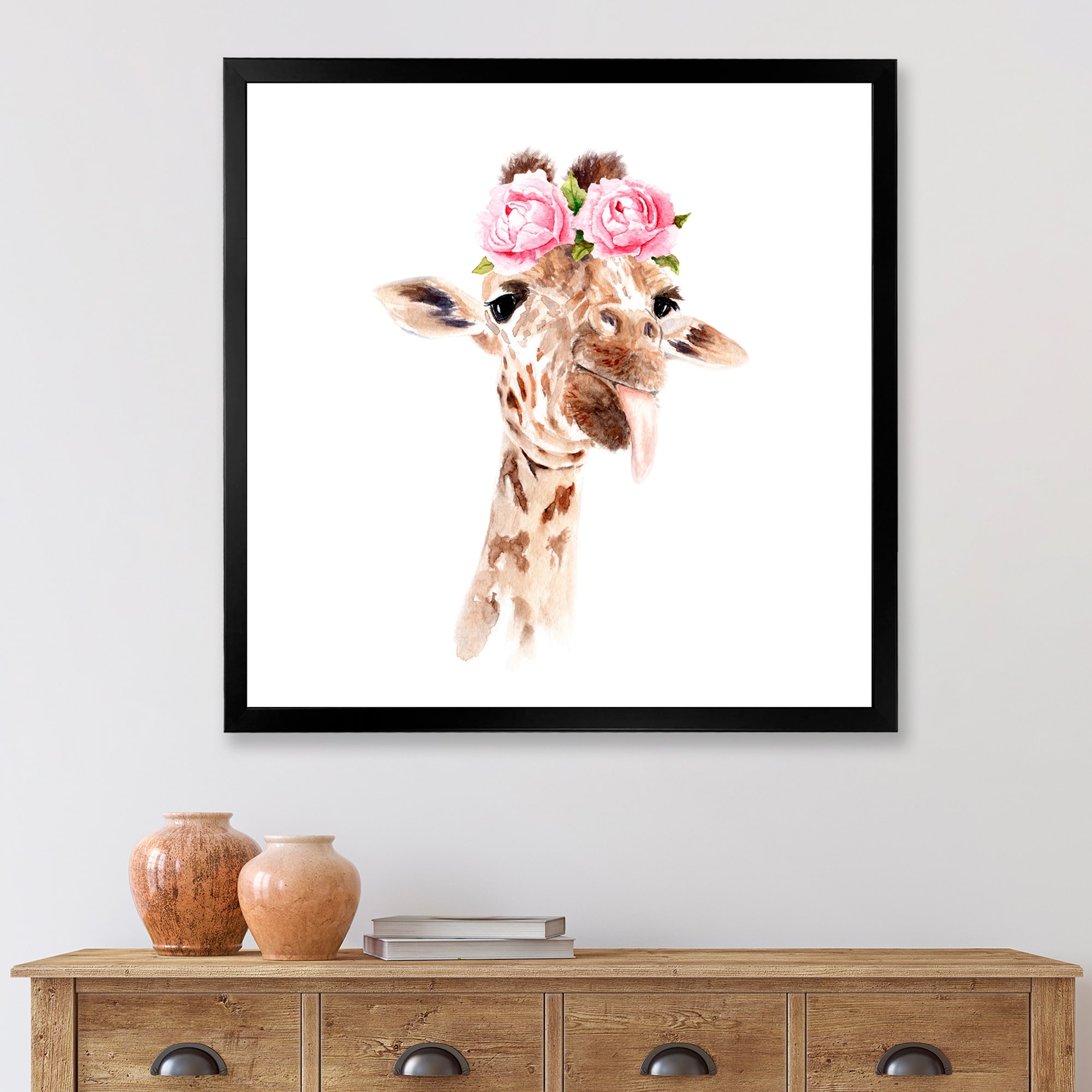 Kissing Giraffes with Birds Premium Framed Print - Ready to Hang