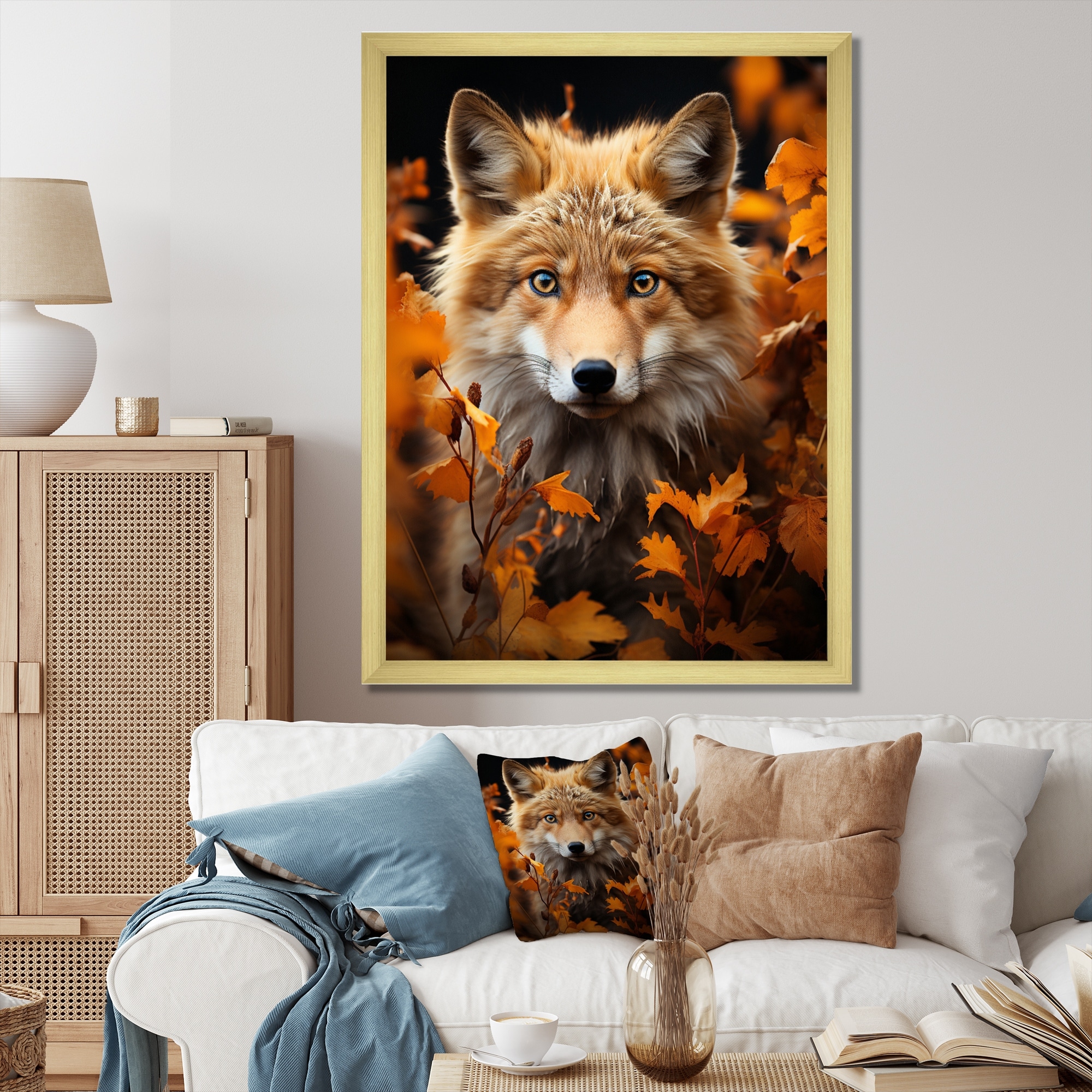 Designart "Fox Portrait in Autumn I" Animals Fox Framed Wall Art Prints
