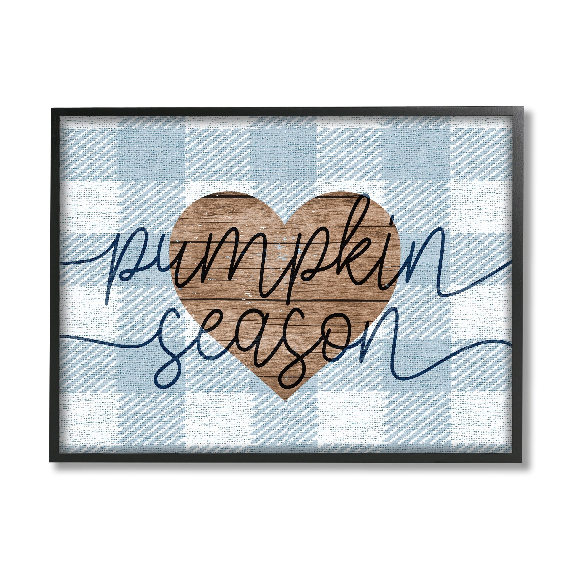 Stupell Pumpkin Season Grain Pattern Heart Blue Checker Plaid Framed Wall Art