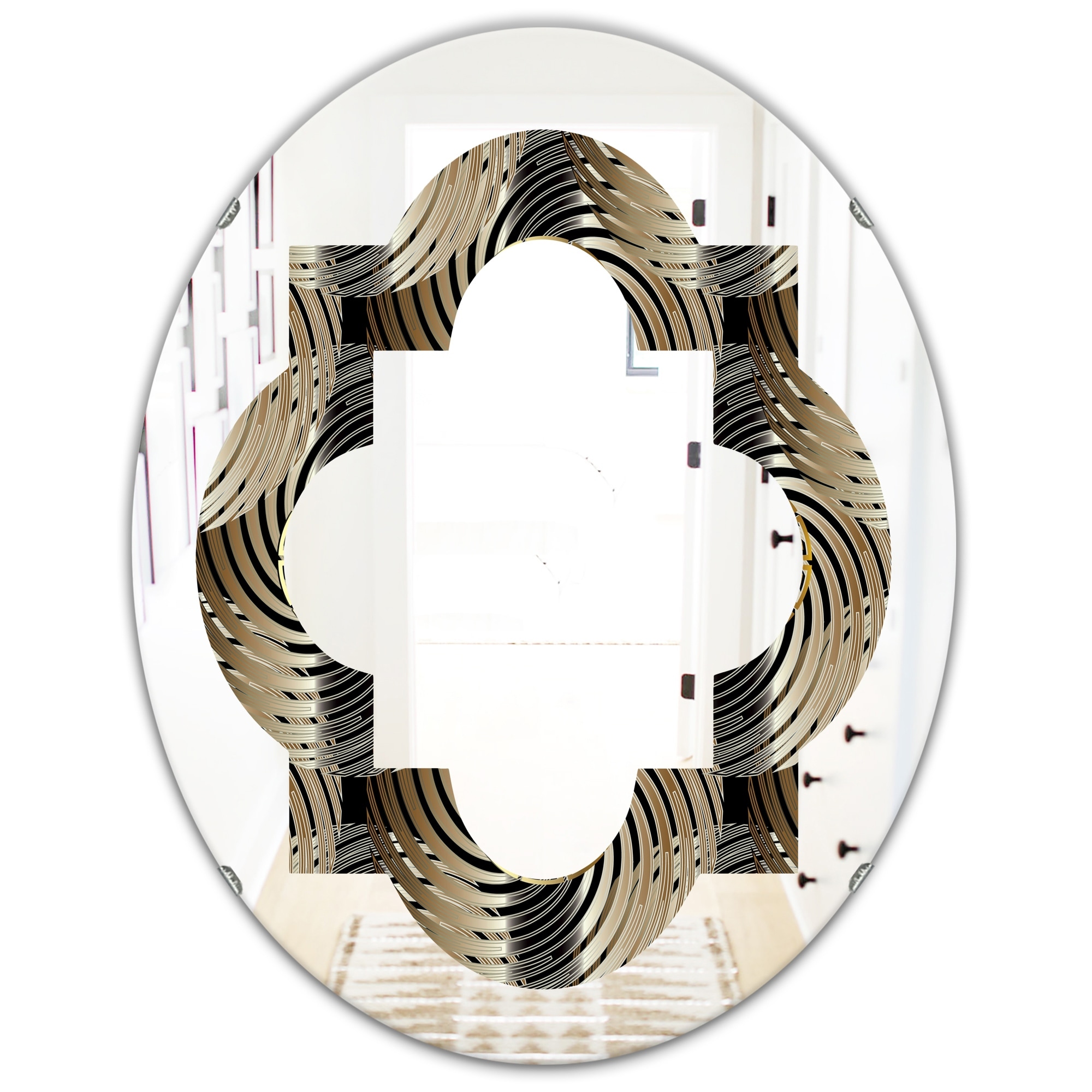Designart 'Circular Geometric Retro Abstract I' Printed Modern Round or Oval Wall Mirror - Quatrefoil