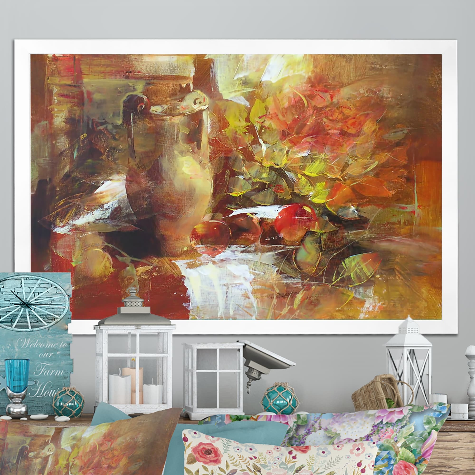 Designart "Still Life Farmhouse Flowers And Fruits" Traditional Framed Wall Decor
