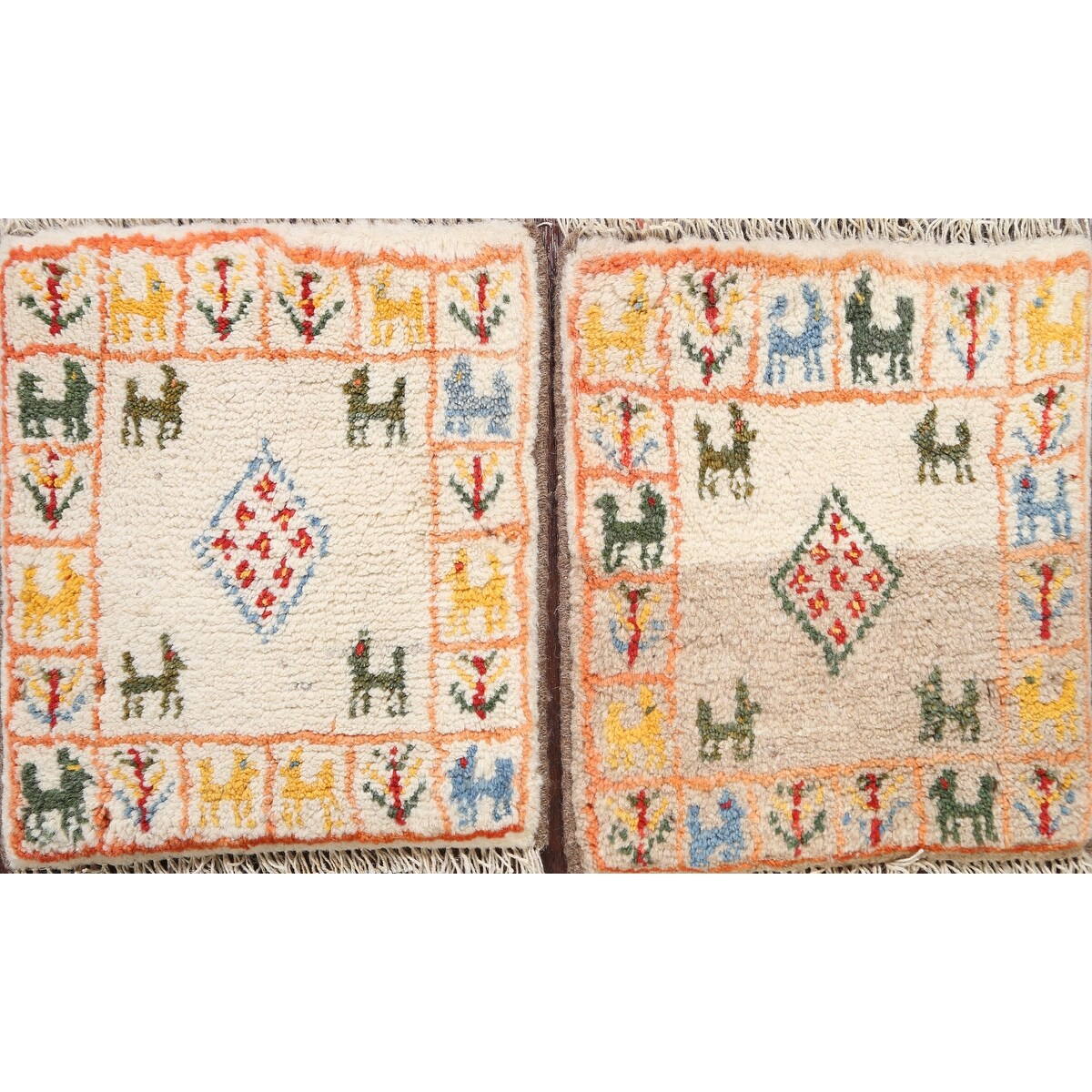 Set of 2 Authentic Gabbeh Persian Area Rug Wool Handmade Tribal Carpet - 1'4" x 1'4" Square