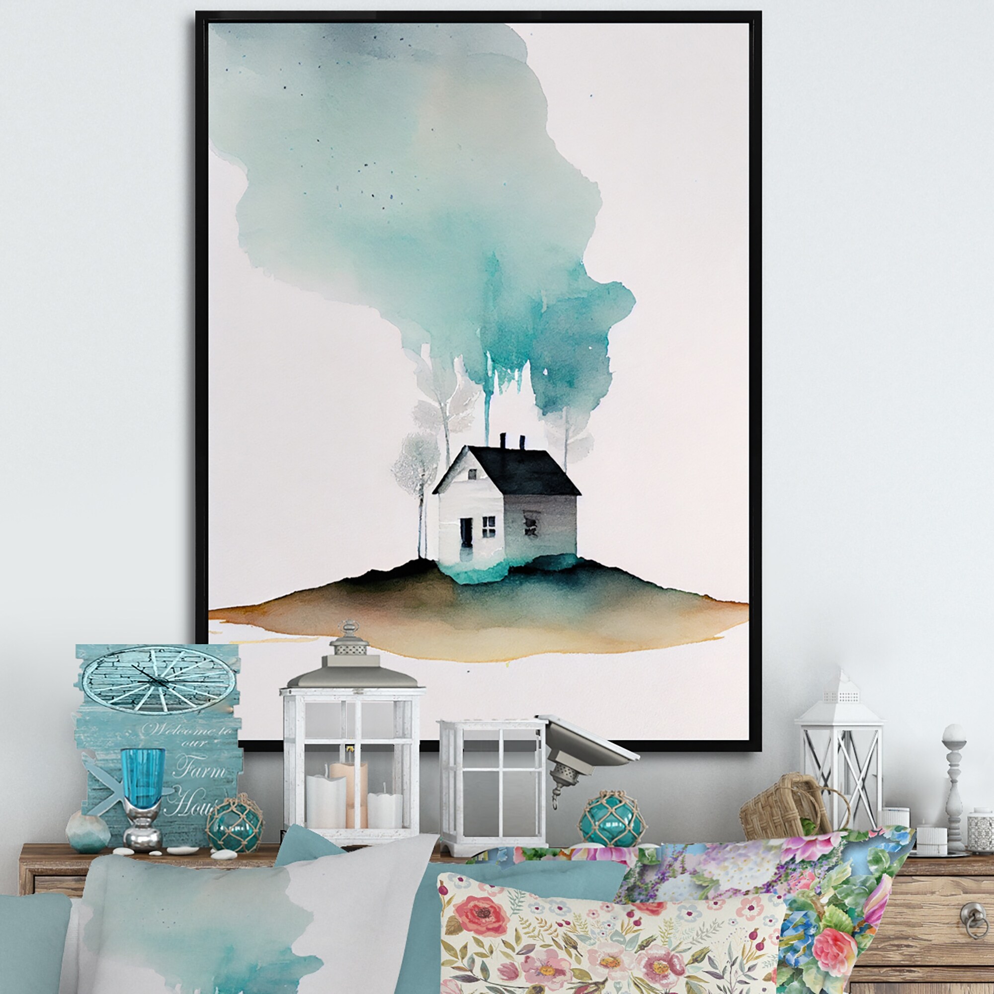 Designart "Countryhouse With Tree At the Lake VI" Lake House Cottage Framed Canvas Wall Art Print