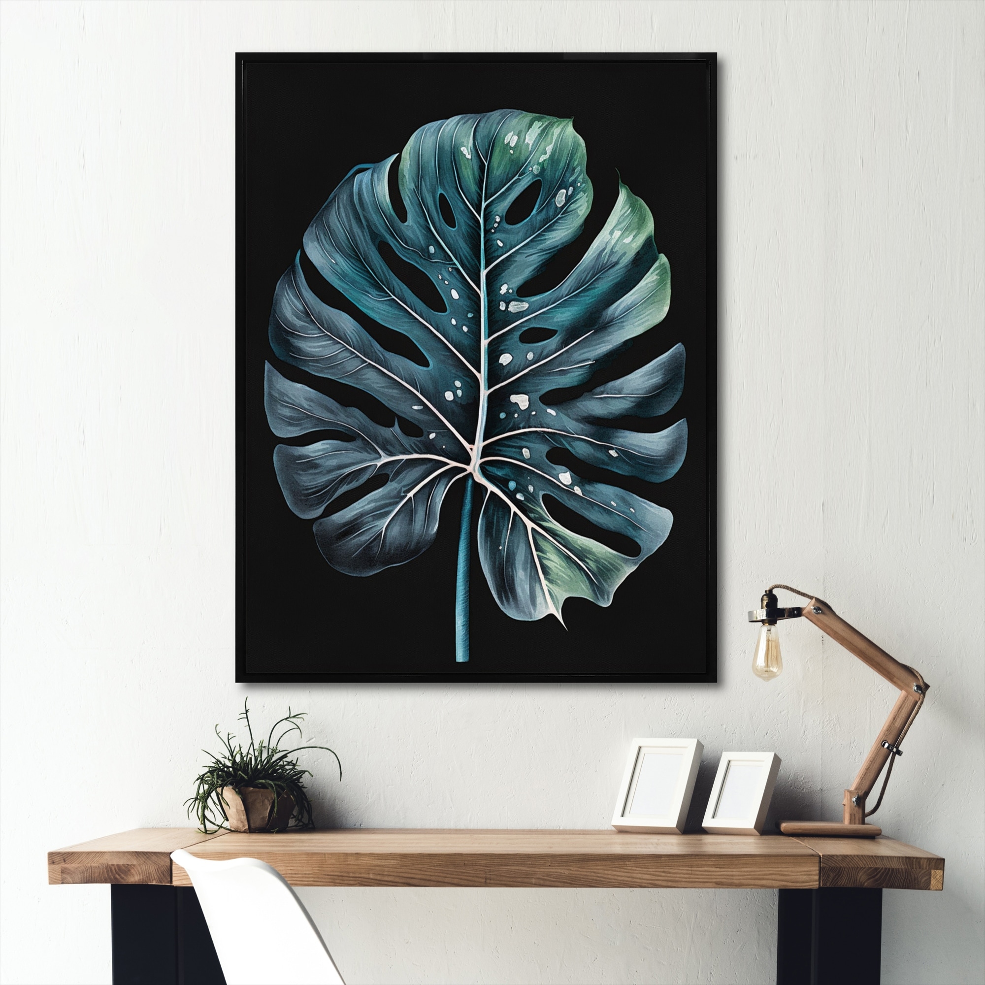 Designart "Blue And White Philodendron Leaf I" Floral Framed Canvas Art Print