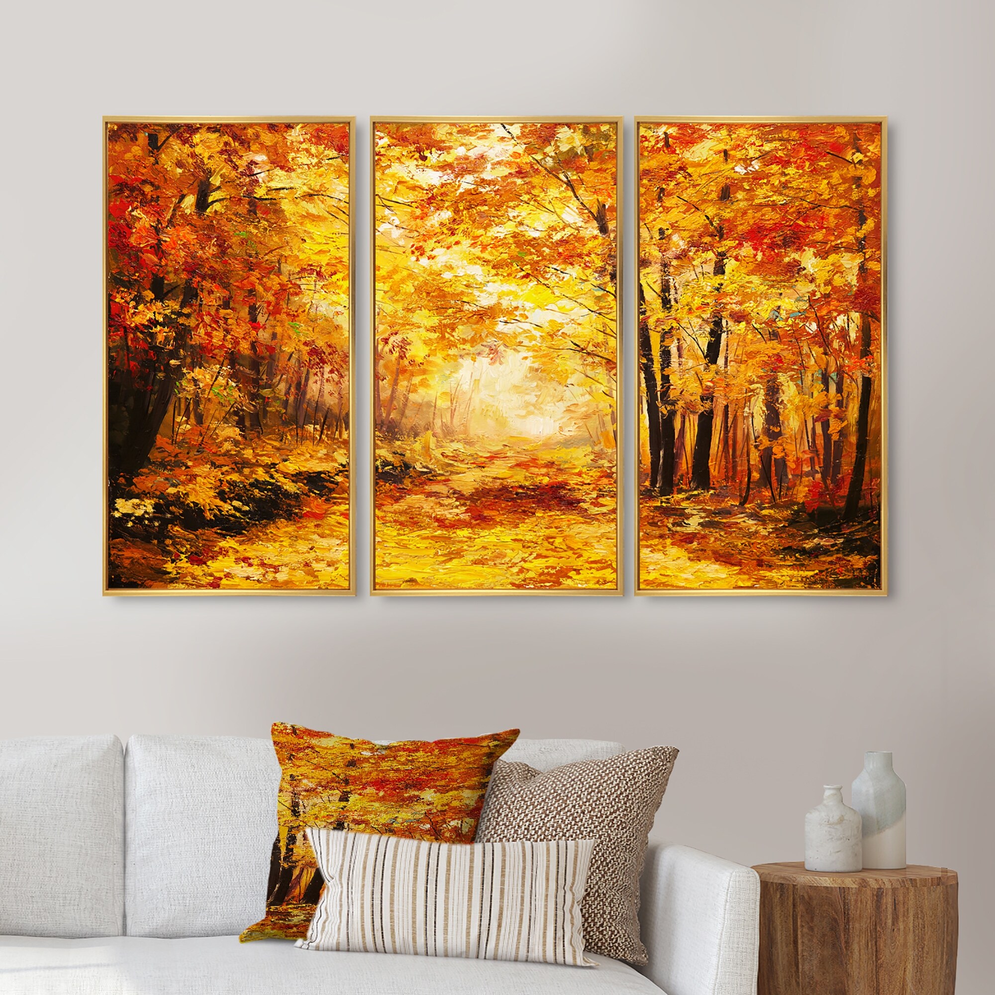 Designart "Yellow Autumn Forest" Landscape Framed Art Set of 3 - 4 Colors of Frames