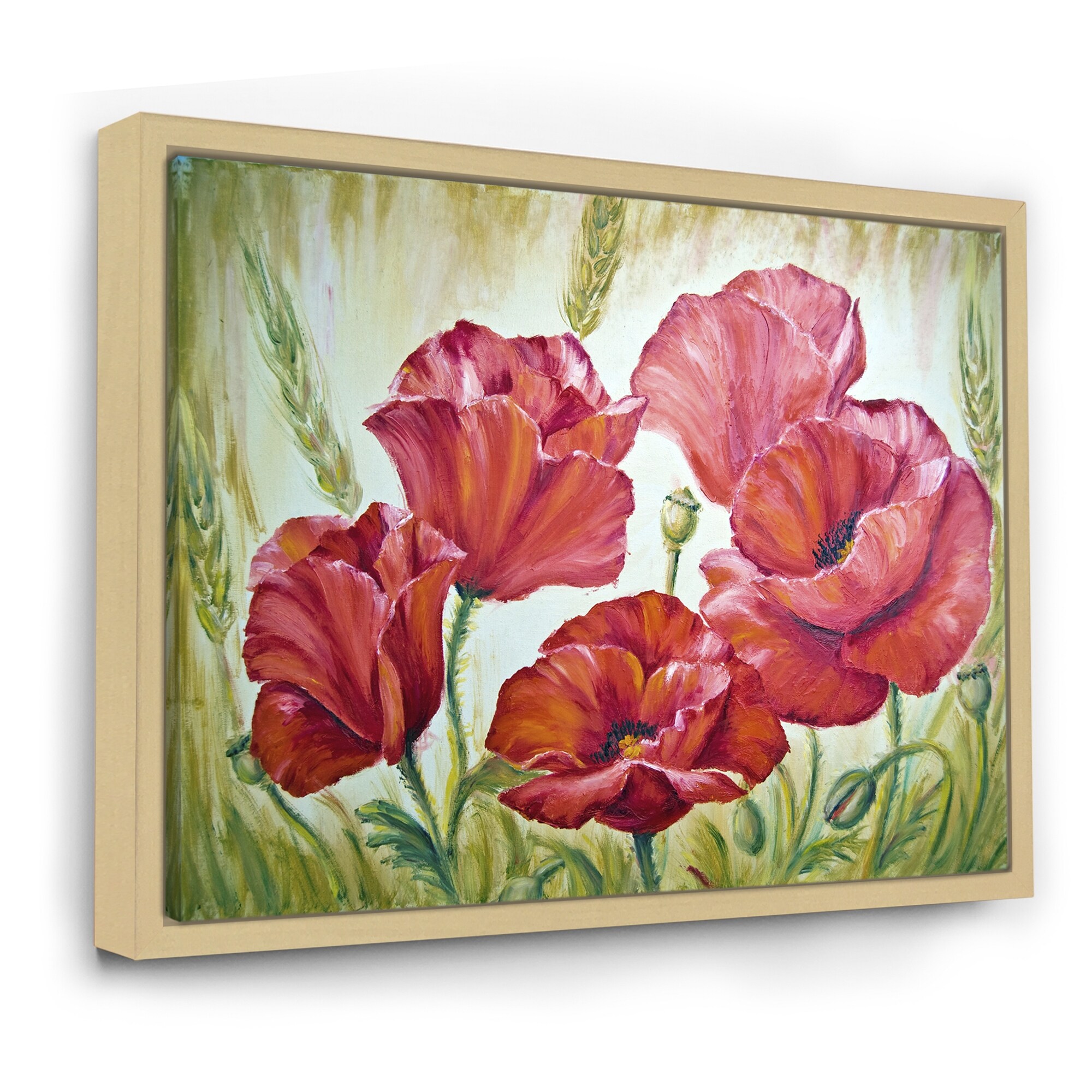 Designart "Blossoming Poppies in the Morning III" Traditional Framed Canvas Wall Art Print