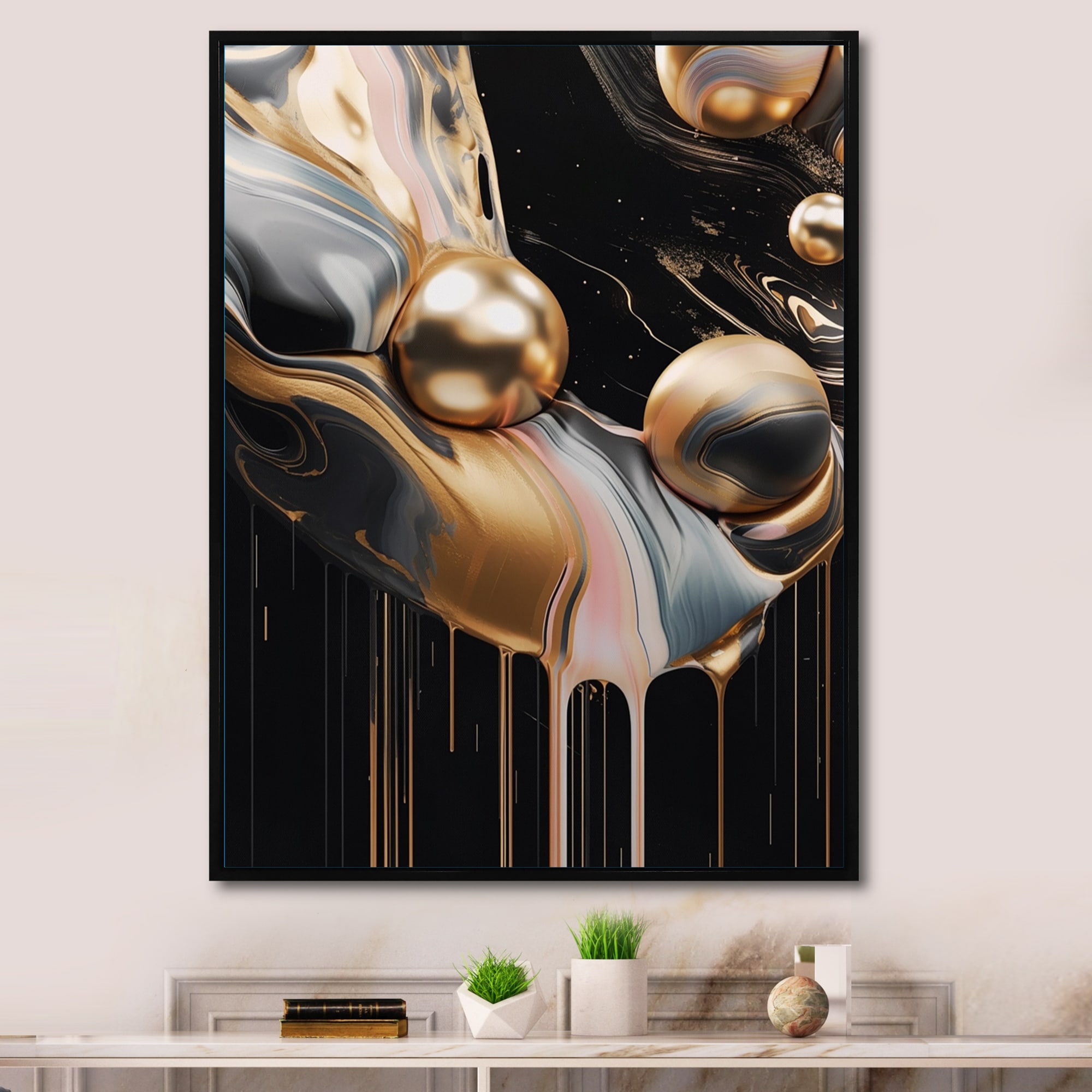 Designart "Gold And Black Marble Mirage V" Abstract Marble Framed Wall Art for Living Room