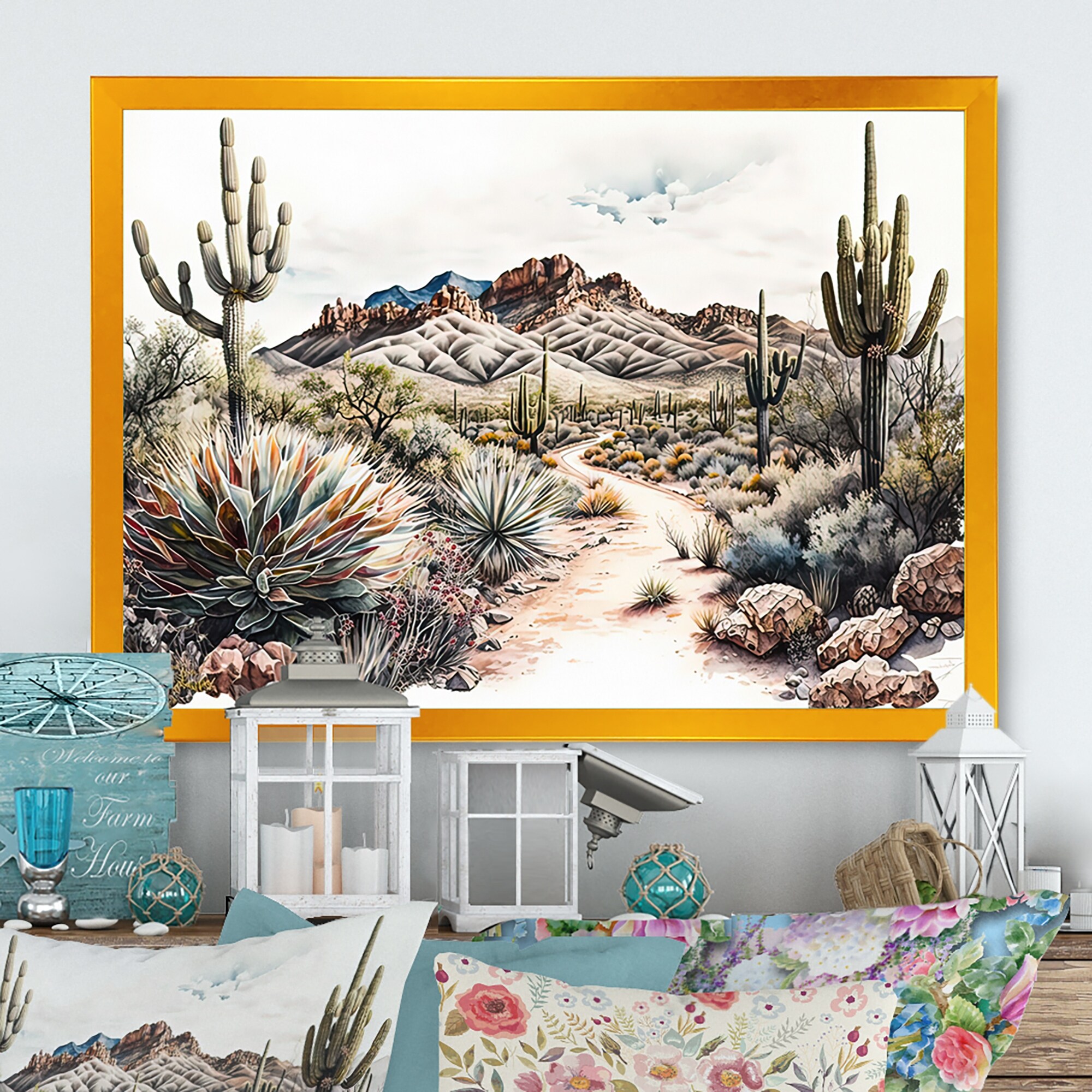 Designart "Arizona Desert Scenery I" Southwestern Framed Art Print