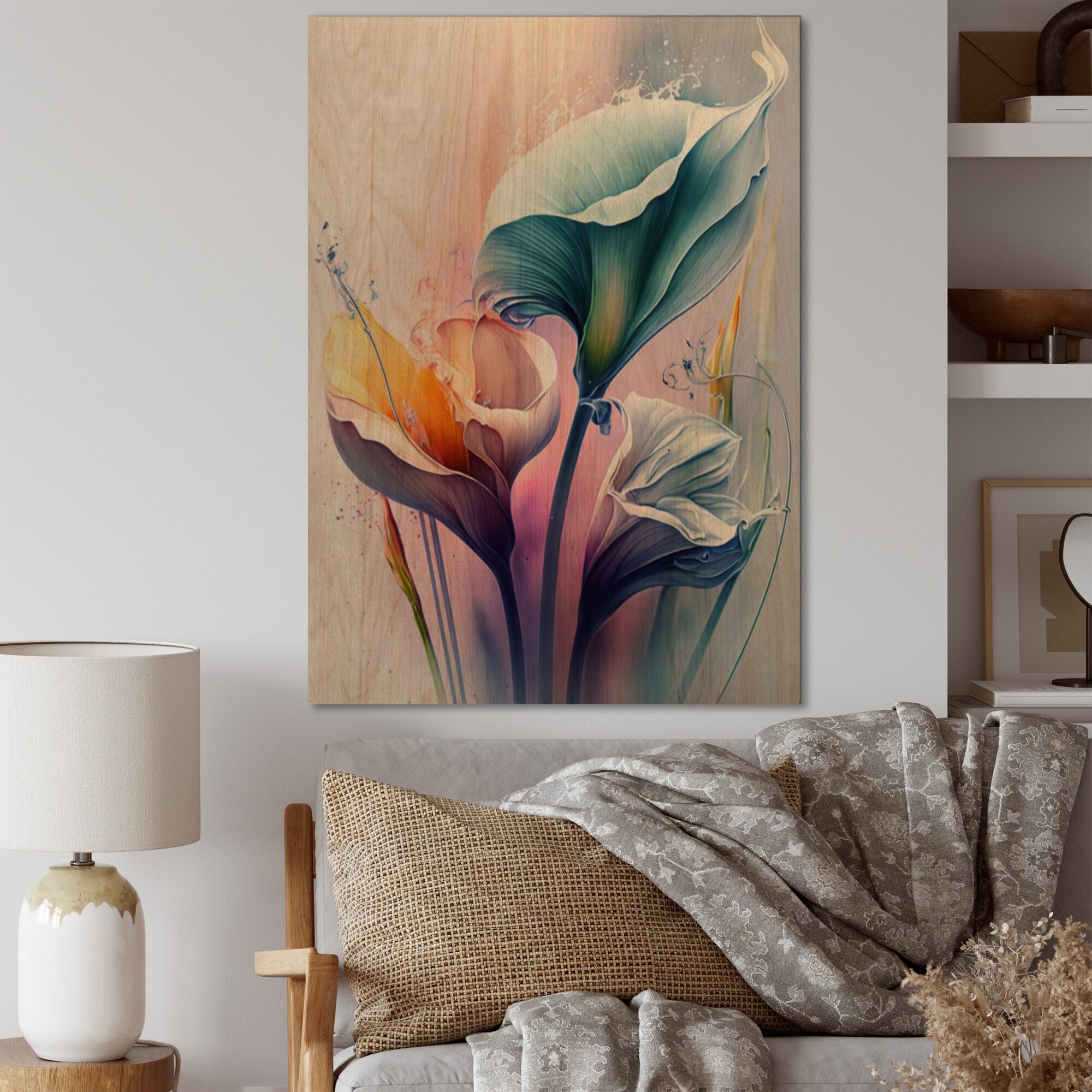 Designart 'Colorful Cally Lilies II' Floral Calla Lily Wood Wall Art - Natural Pine Wood