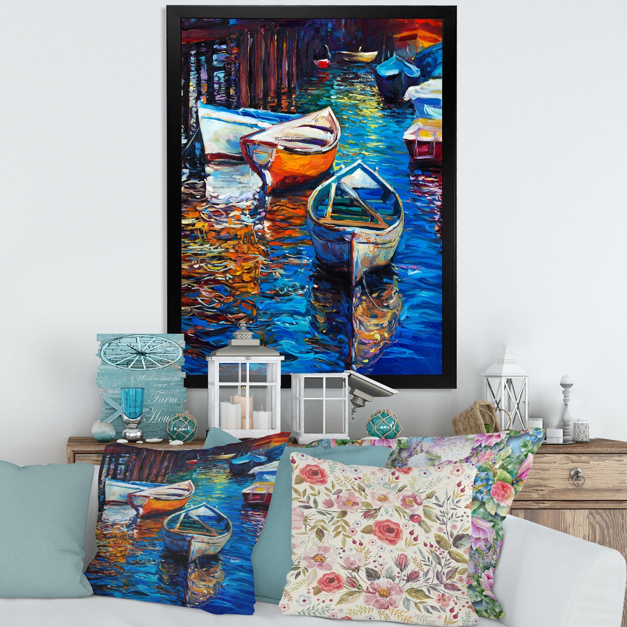 Designart "Boats Resting on the Water During Warm Sunset X" Nautical & Coastal Framed Art Print