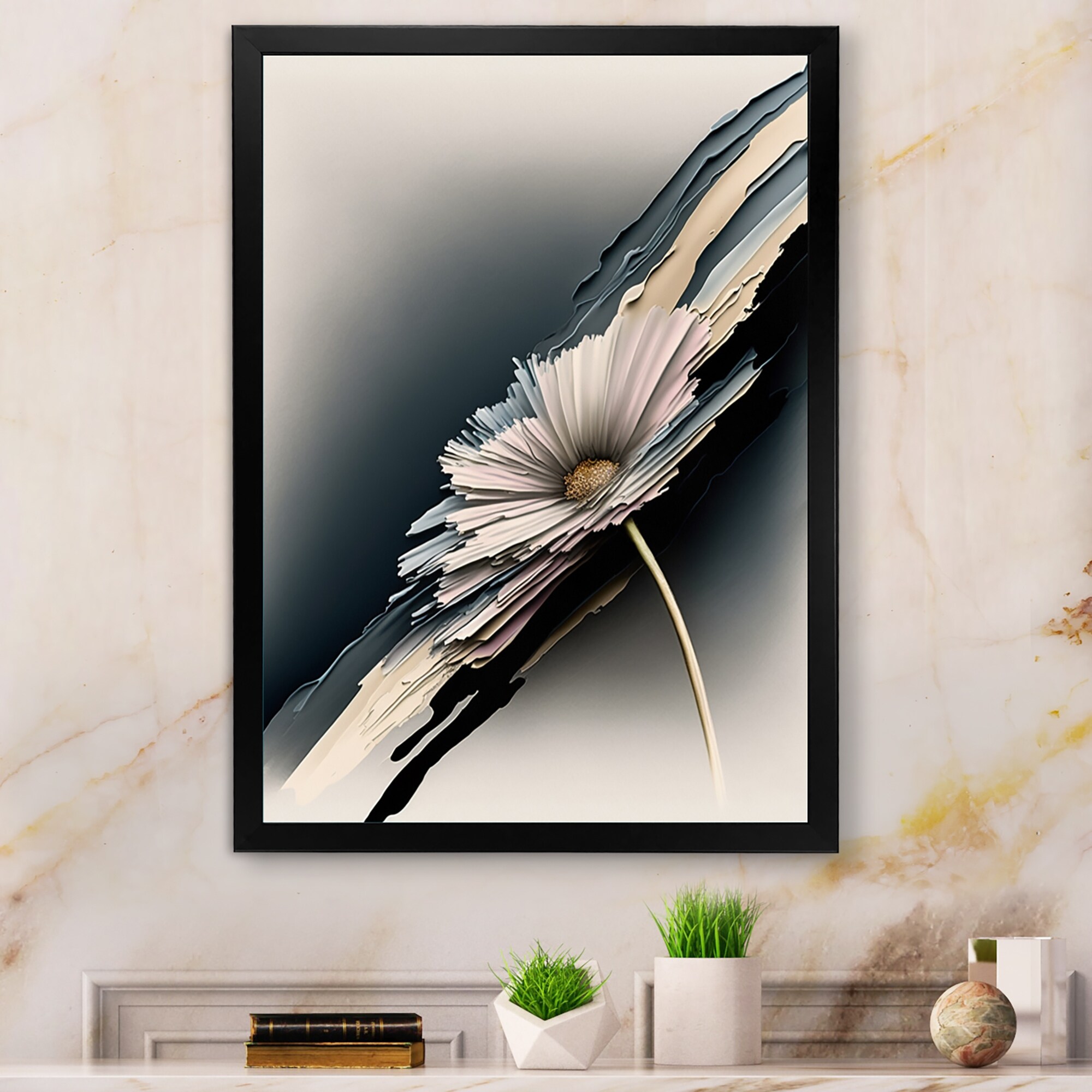 Designart "White Gerber Flowers Hyperrealistic I" Floral Daisy Framed Art Print