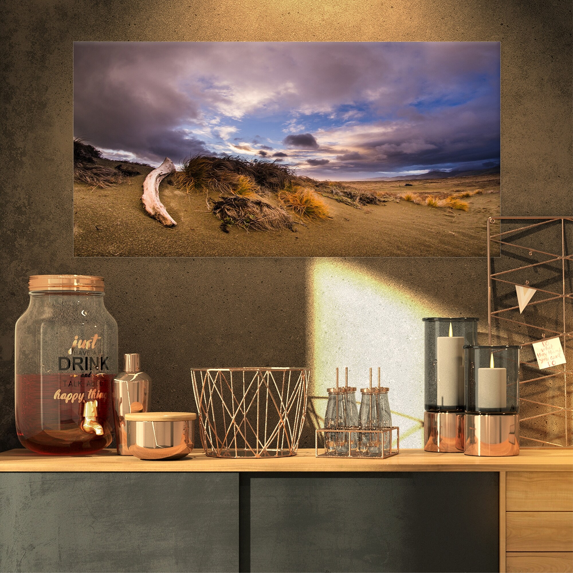 Designart "Old Wooden Trunk in the Sunset" Modern Seascape Canvas Artwork
