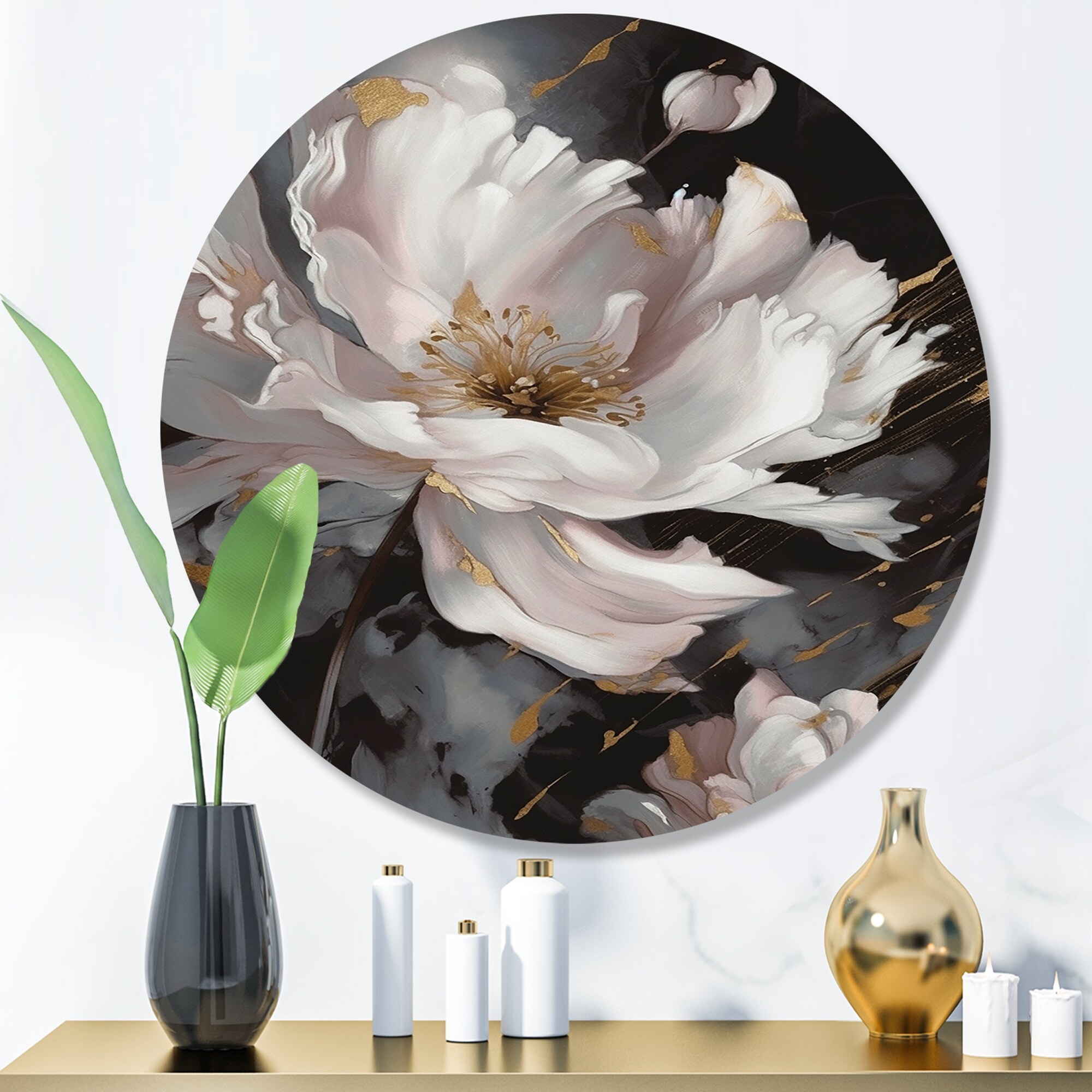 Designart "White And Gold Daisy Symphony II" Floral Daisy Metal Round Wall Art