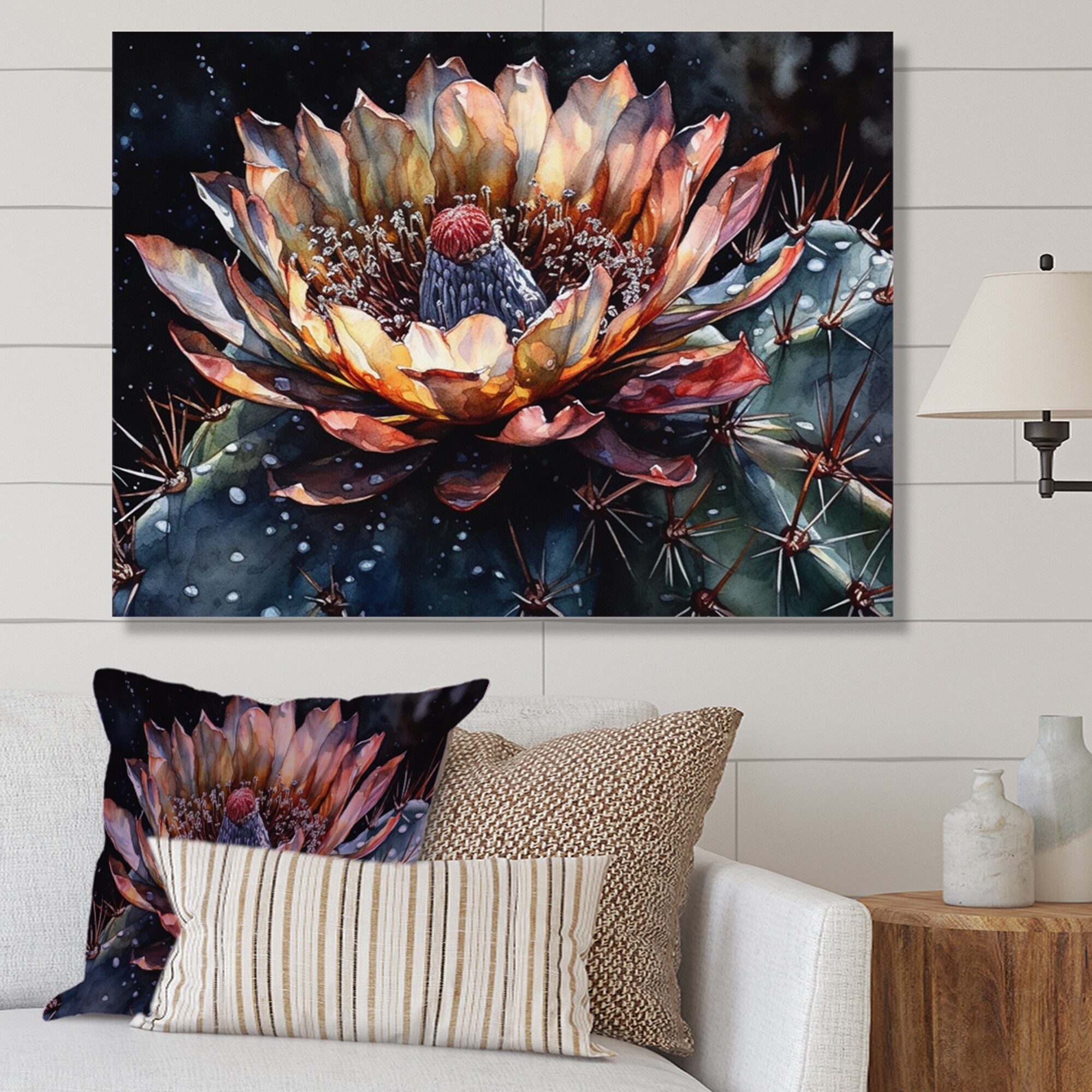 Designart "Brown Green Cactus Flower Ii" Floral Cactus Wall Art Prints