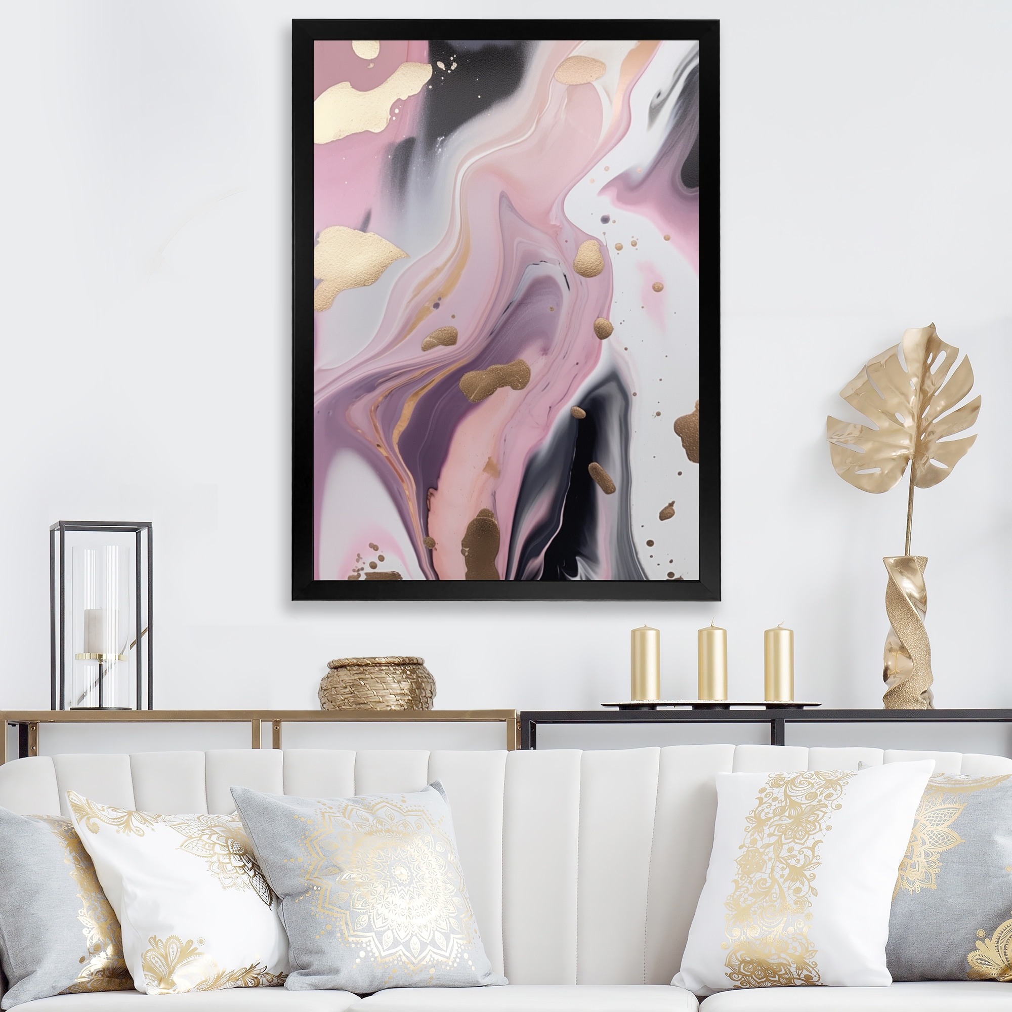Designart "Gold And Pink Swirl Ink I" Abstract Marble Framed Wall Decor