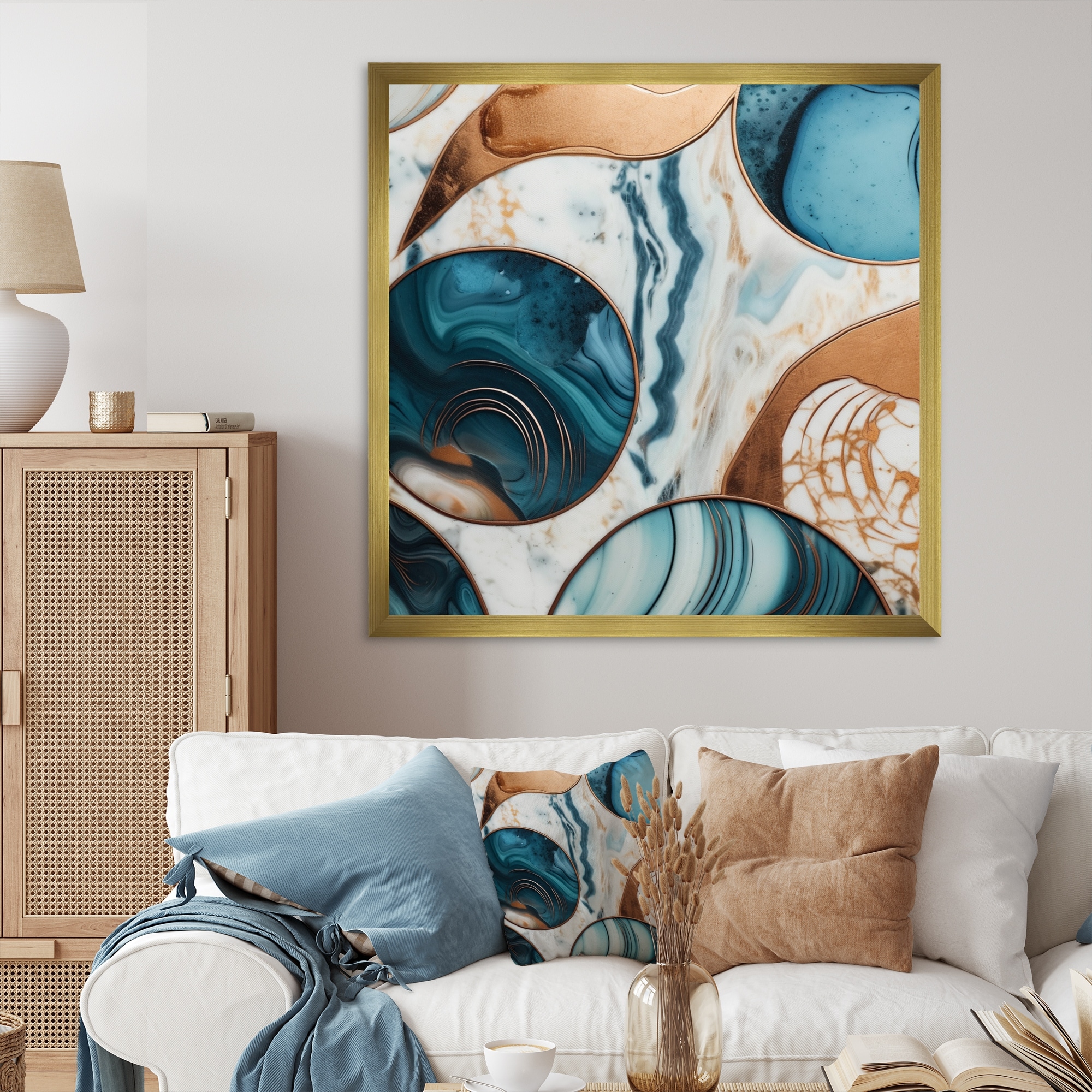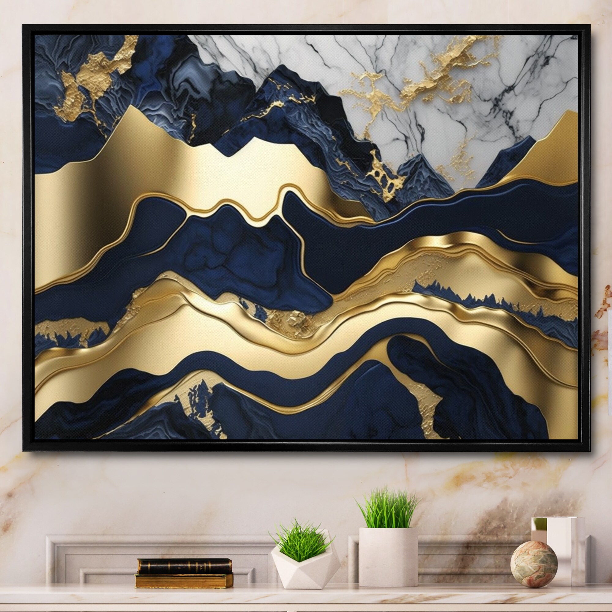 Designart "Blue And Gold Mesmerizing Marble Abstraction I" Abstract Marble Framed Wall Art Prints