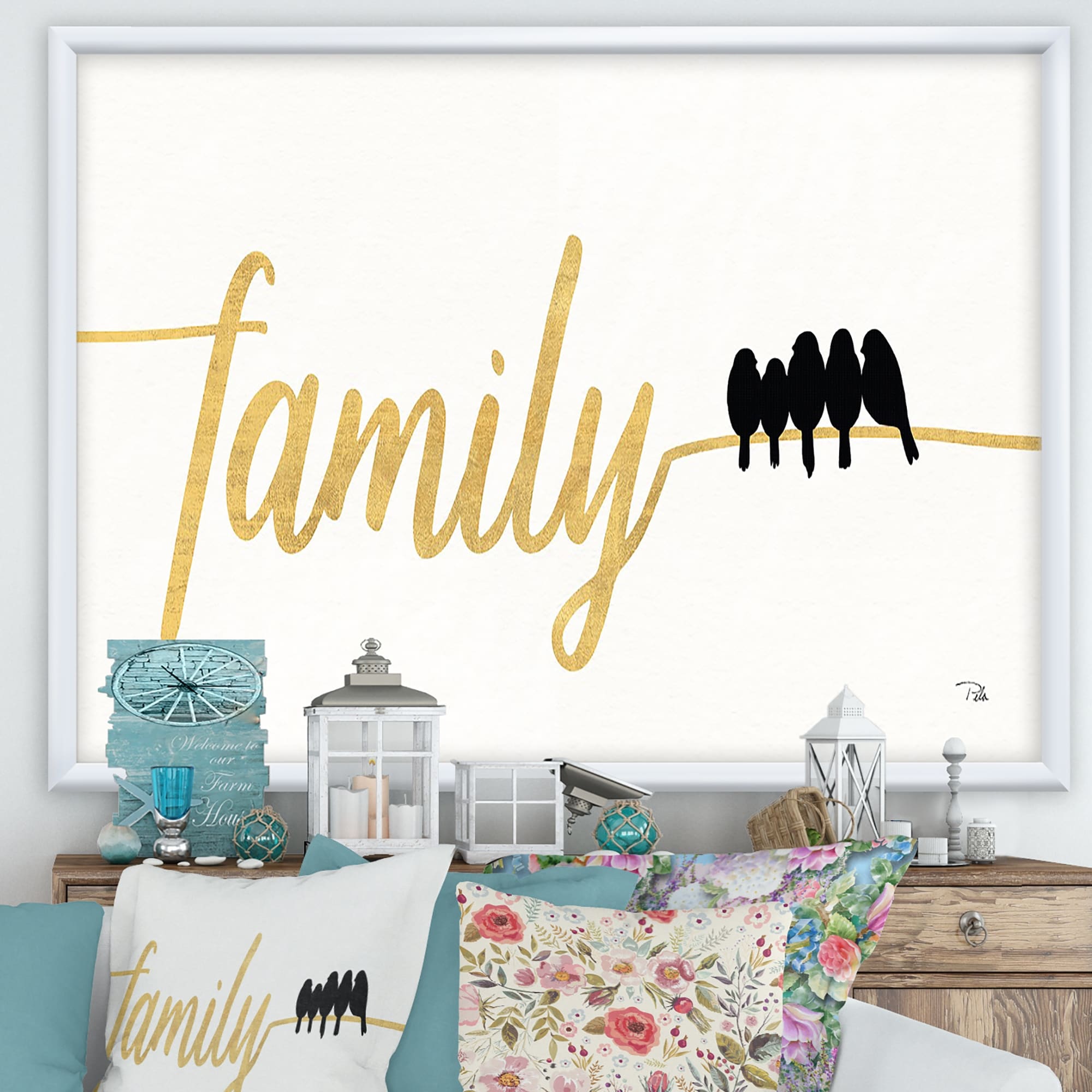 Designart "Family of Birds on Gold Words II" Cottage Framed Art Print