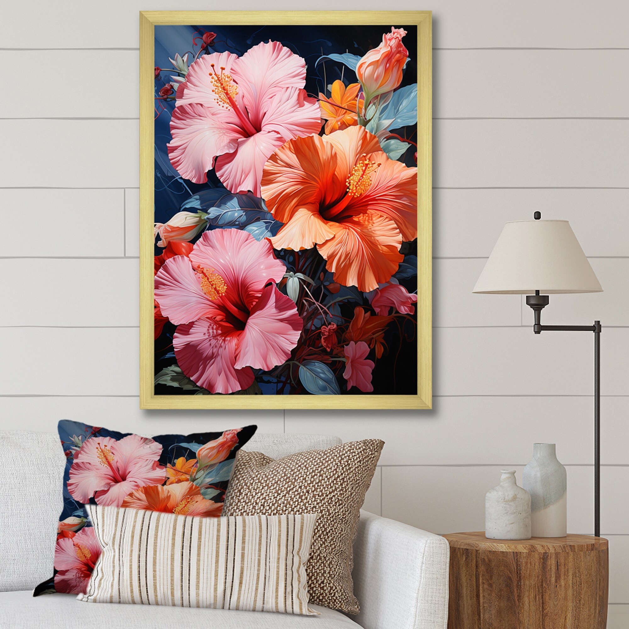 Designart "Hibiscus Hibiscus Harmony I" Hibiscus Framed Canvas Art Print