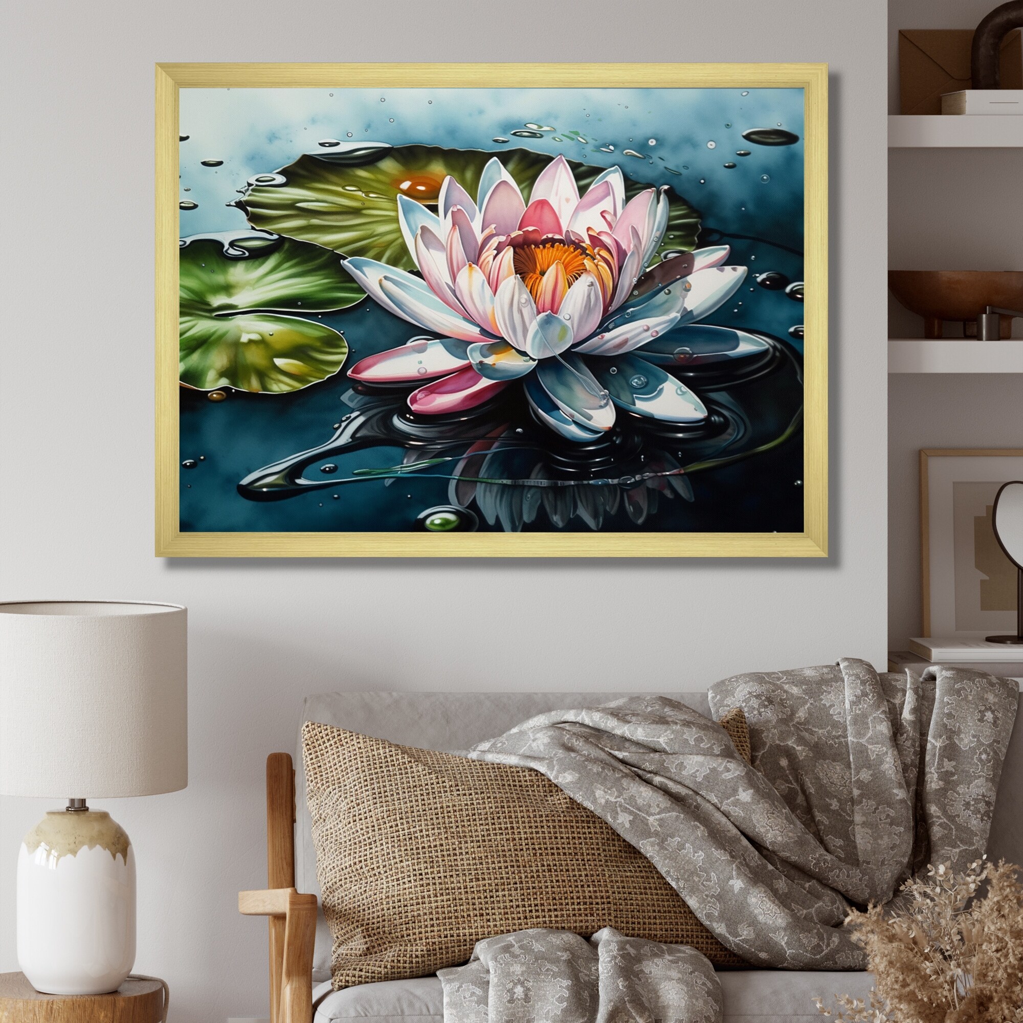 Designart "Pink Lily Pad" Floral Leaves Framed Wall Art Prints