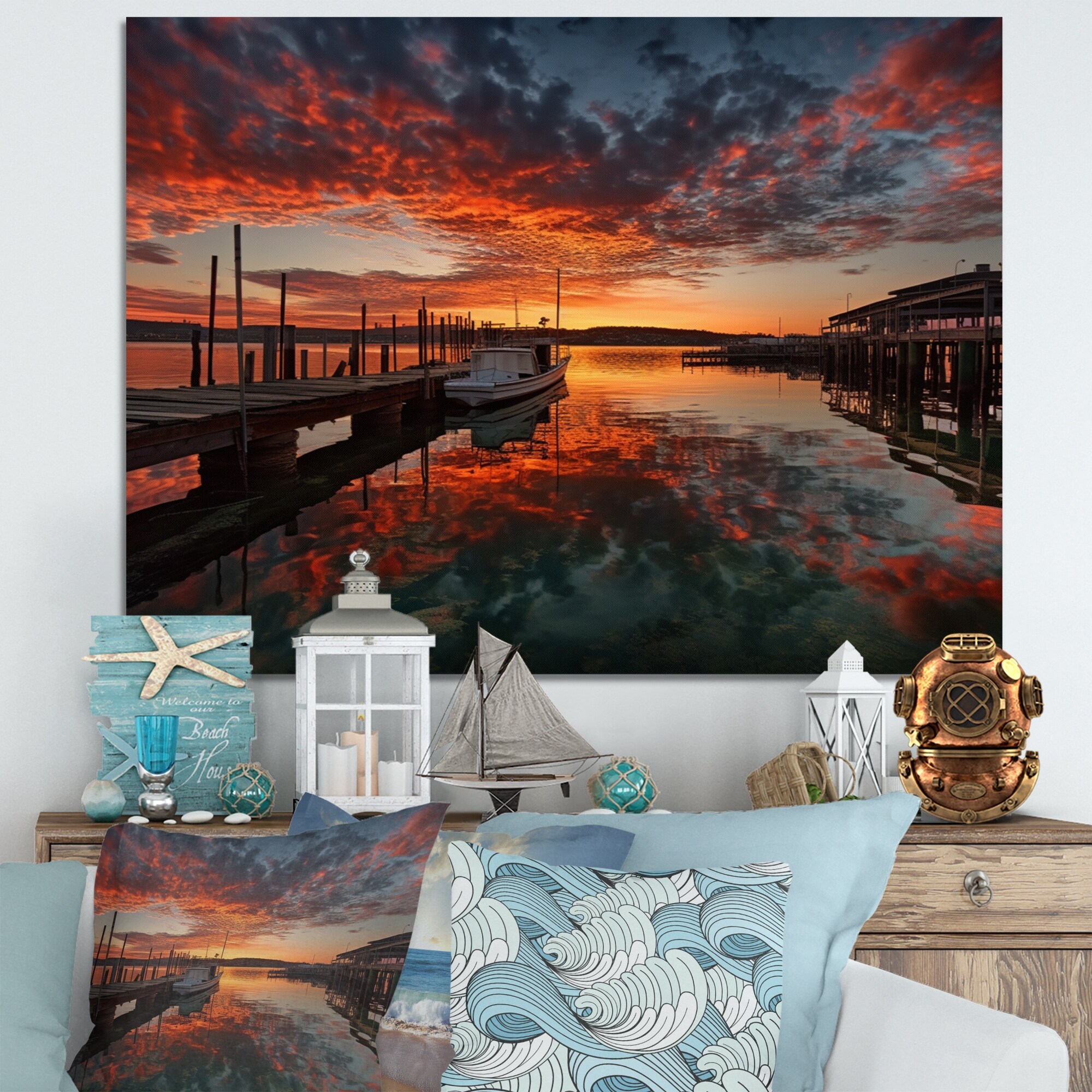 Designart "Sunset Over Port Ii" Modern Landscape Beach Canvas Prints