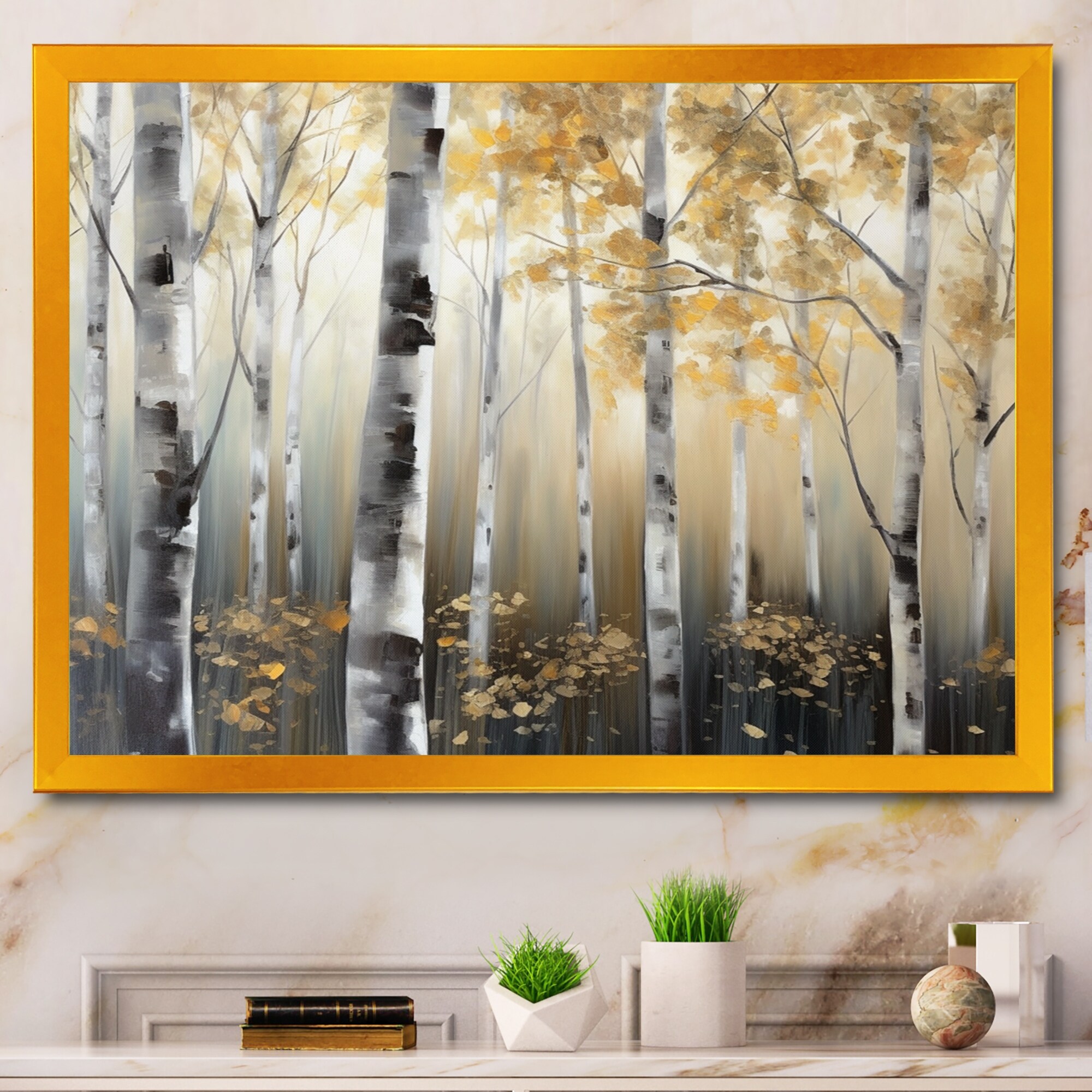 Designart "Birch Tree Dense Forest Iii" Tree Framed Canvas Art Print