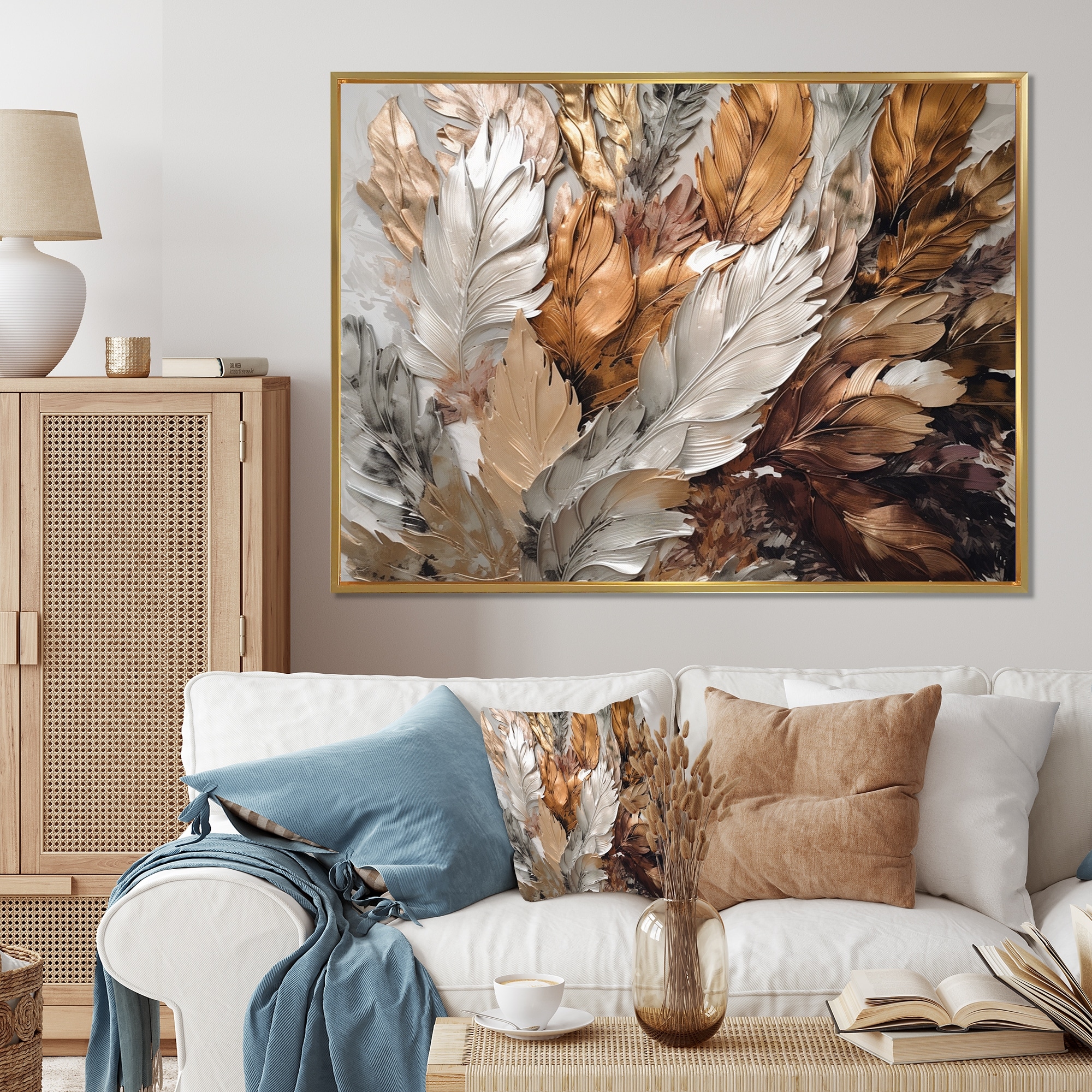 Designart "Gold Feather Extravaganza Iv" Glam Feather Framed Canvas Print