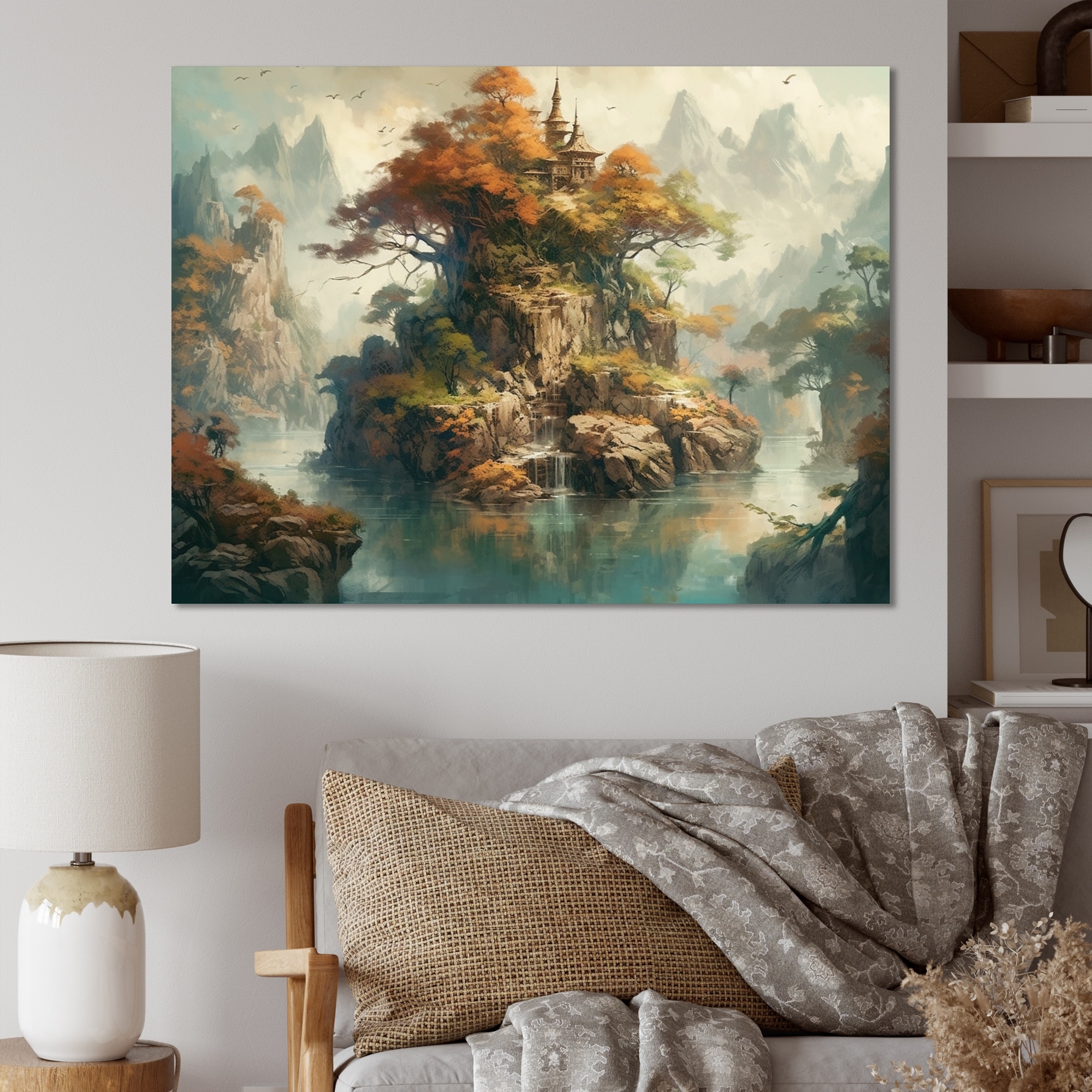 Designart "Whimsical Island of Trees And Mountains Ii" Japon Landscape Wall Decor
