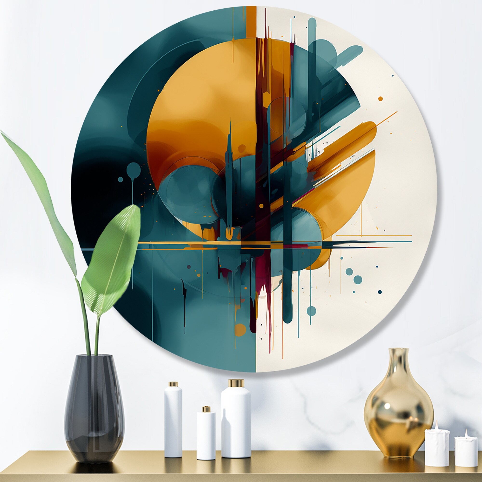 Designart "Gold Modern Shapes Painting" Abstract Metal Round Wall Art