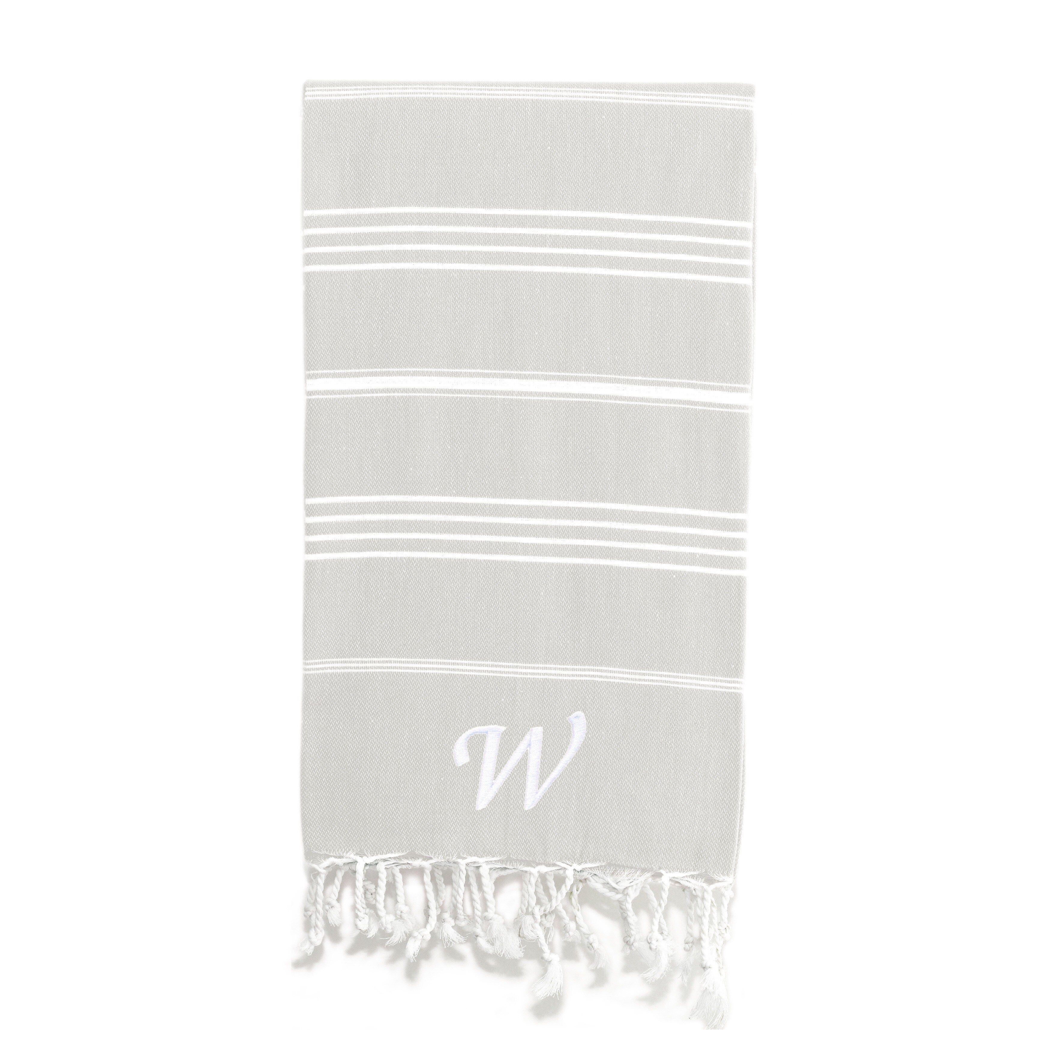 Authentic Pestemal Fouta Original Grey and White Turkish Cotton Bath/ Beach Towel with Monogram Initial