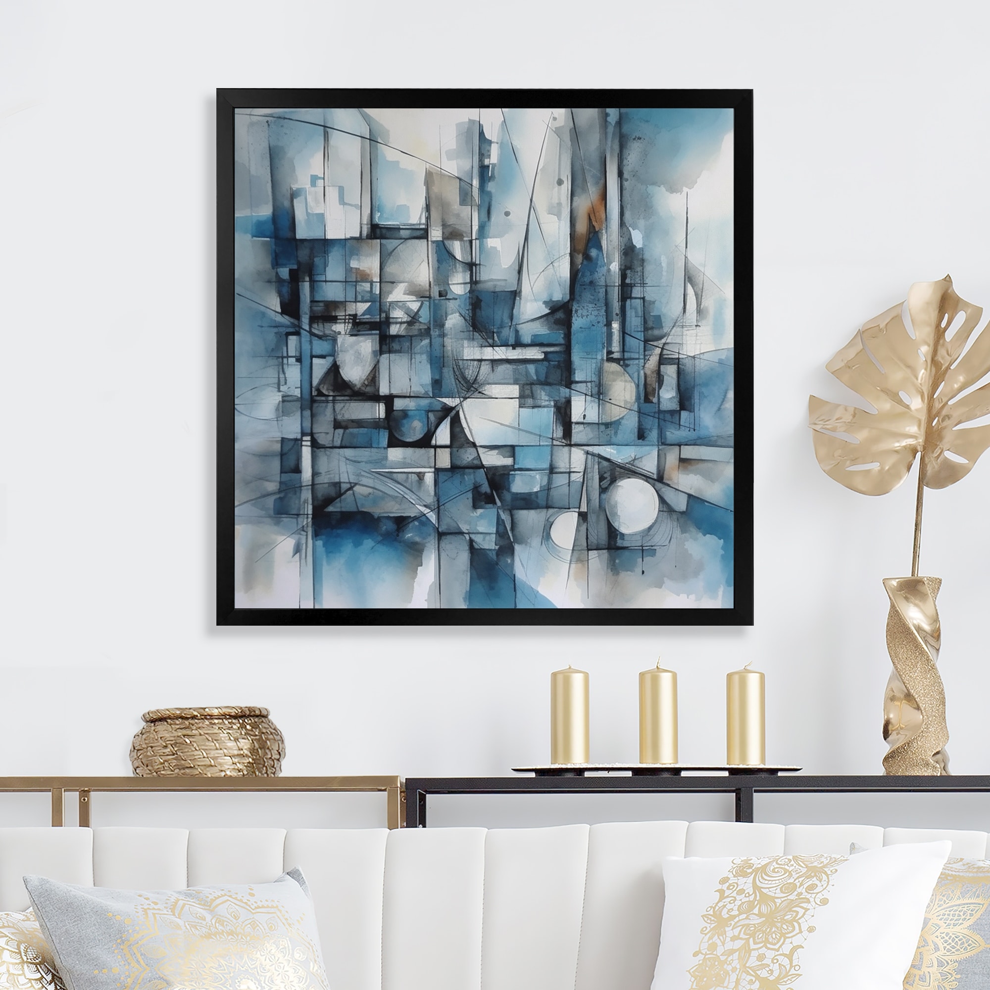 Designart "Blue Abstracted Harmonies of Shape Iv" Modern Geometric Framed Wall Decor
