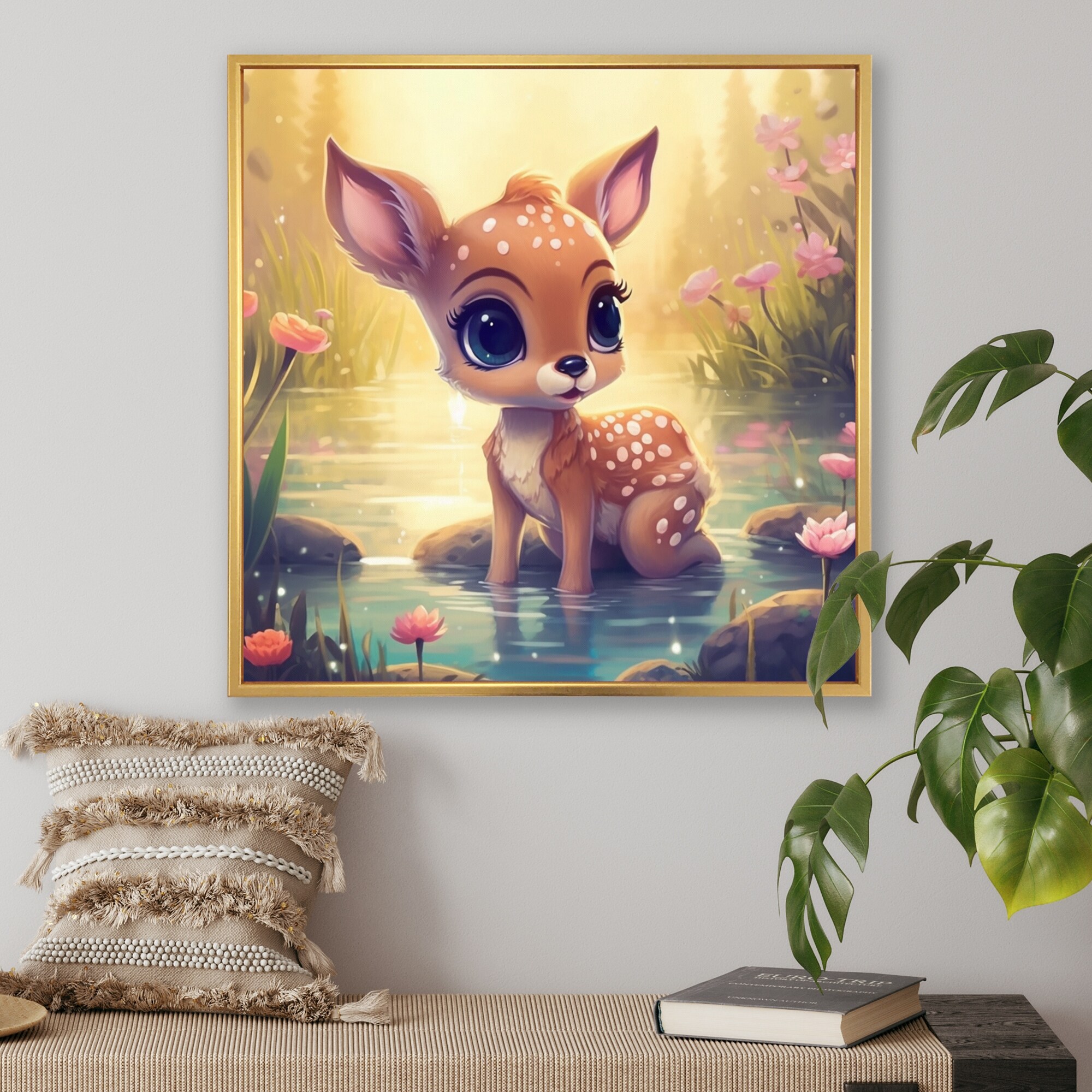 Designart "Cute Baby Deer I" Animals Deer Framed Canvas Print