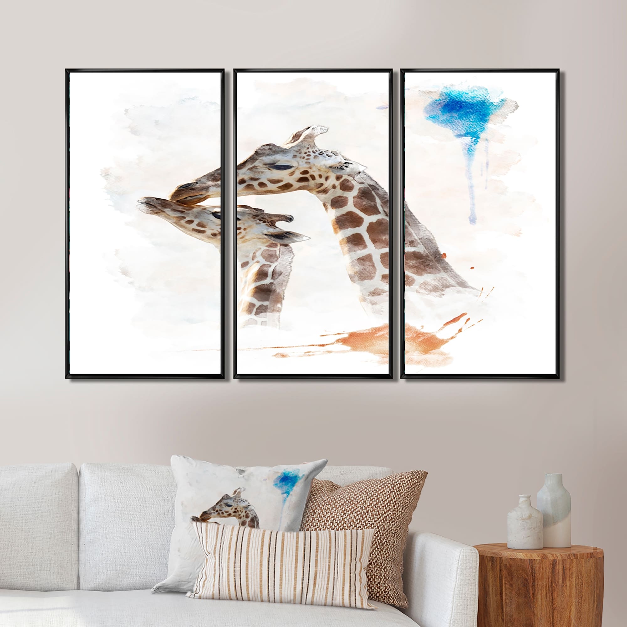 Designart "Portrait of a Giraffe and Child" Farmhouse Framed Canvas Wall Art Set of 3 - 4 Colors of Frames