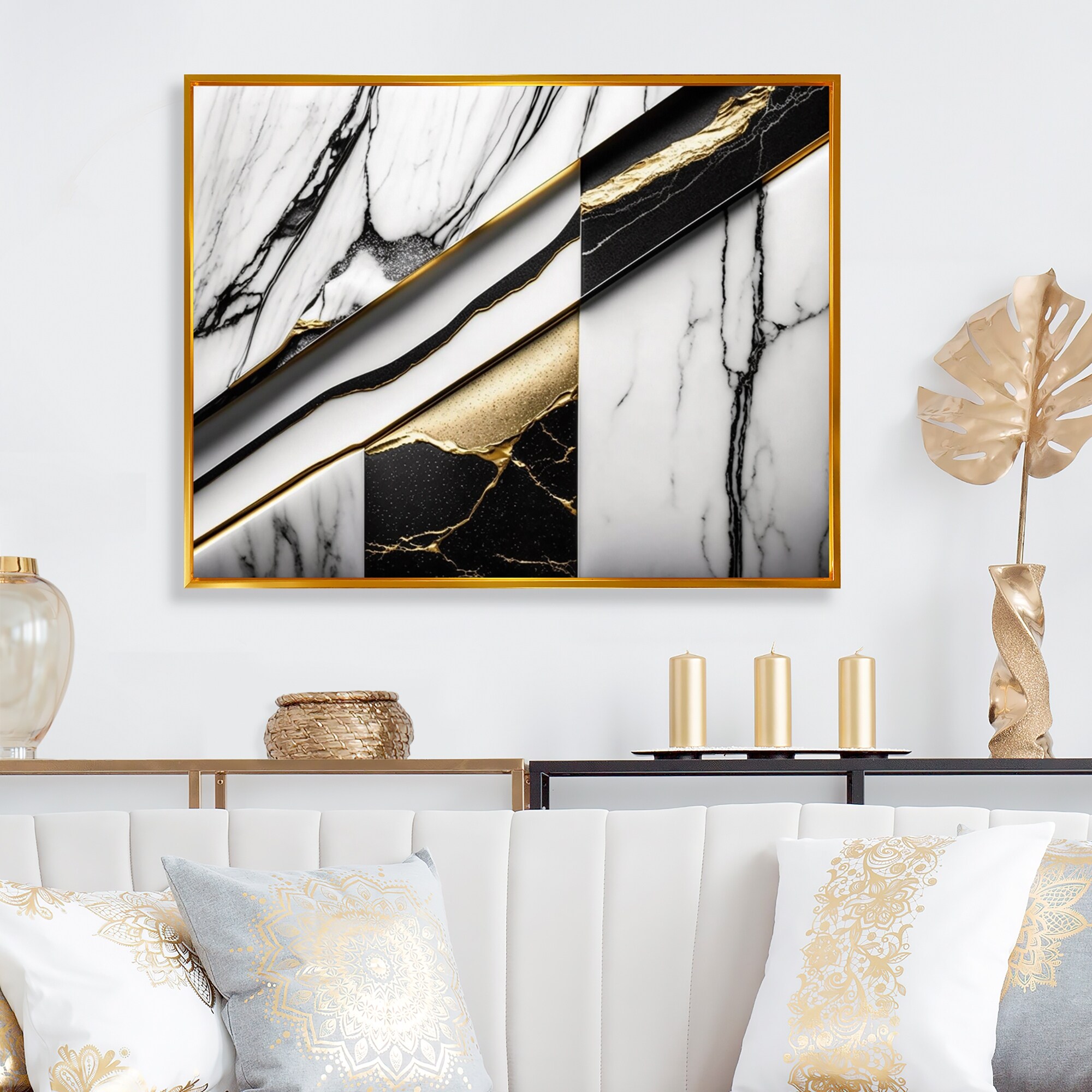 Designart "Abstract Geode Geometric Marble Grey I" Animals Framed Canvas Art Print
