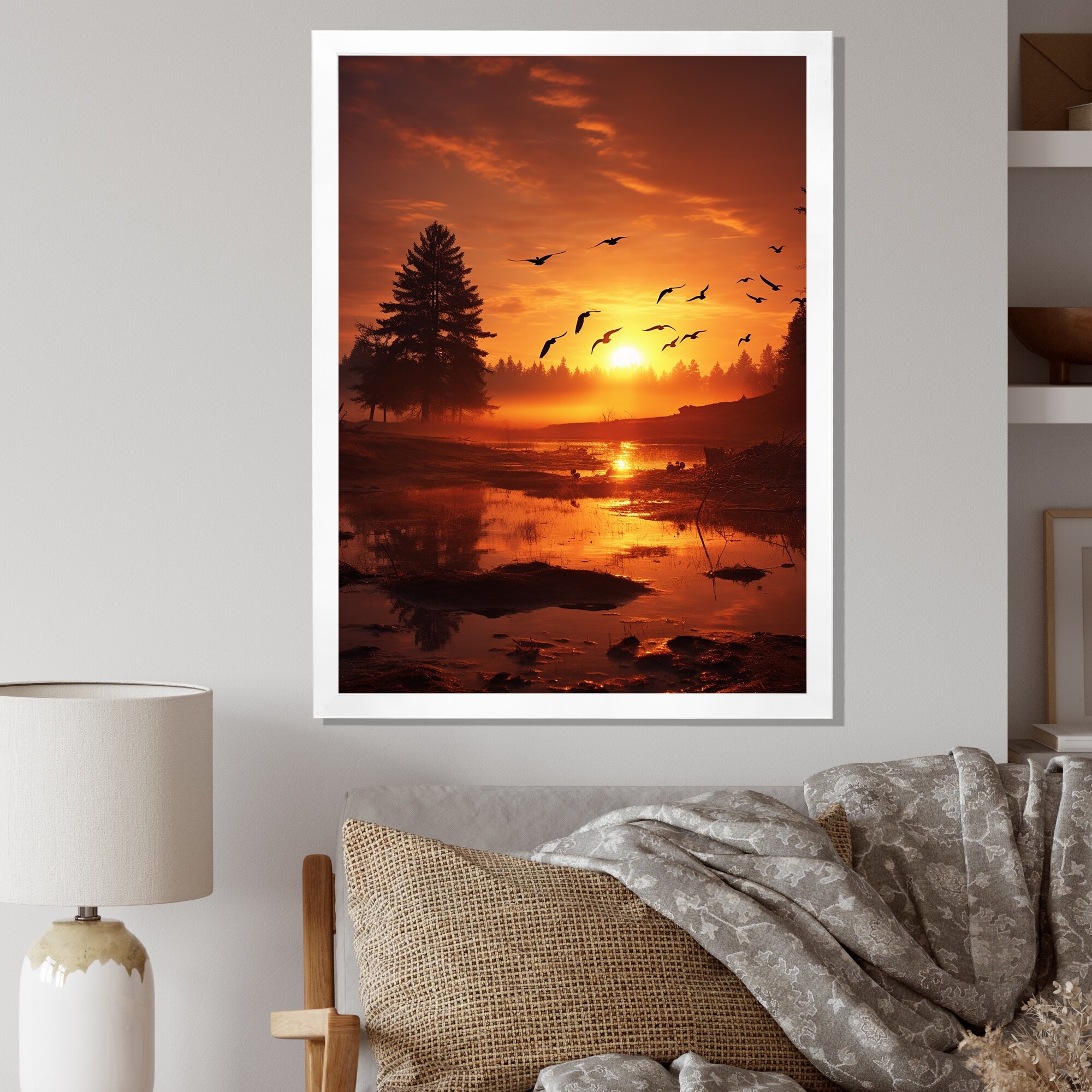 Designart "Sunrise Morning At the Lake II" Sunrisesunset Framed Wall Art Prints