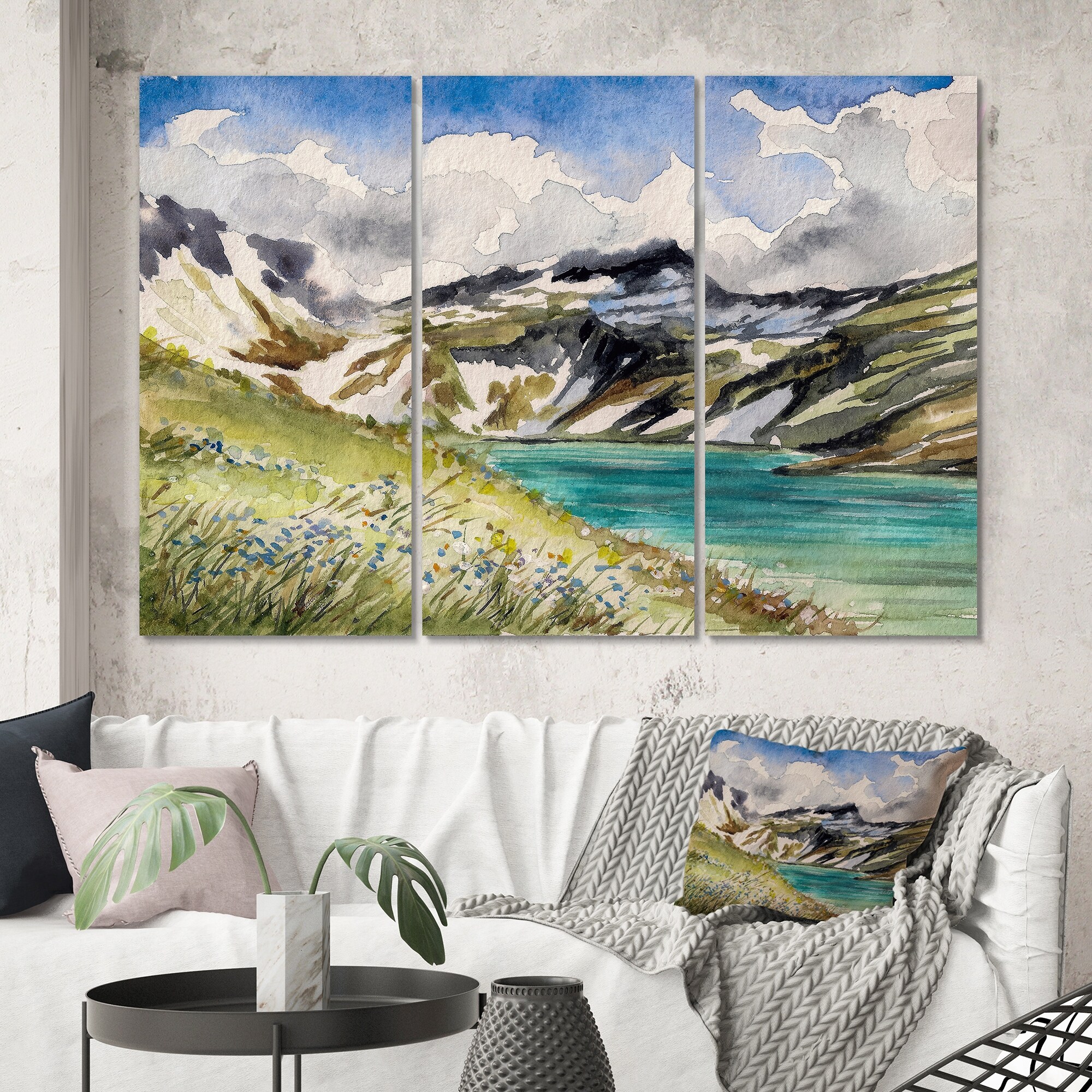 Designart "Landscape With Blue River in the Mountains" Country Canvas Wall Art Print