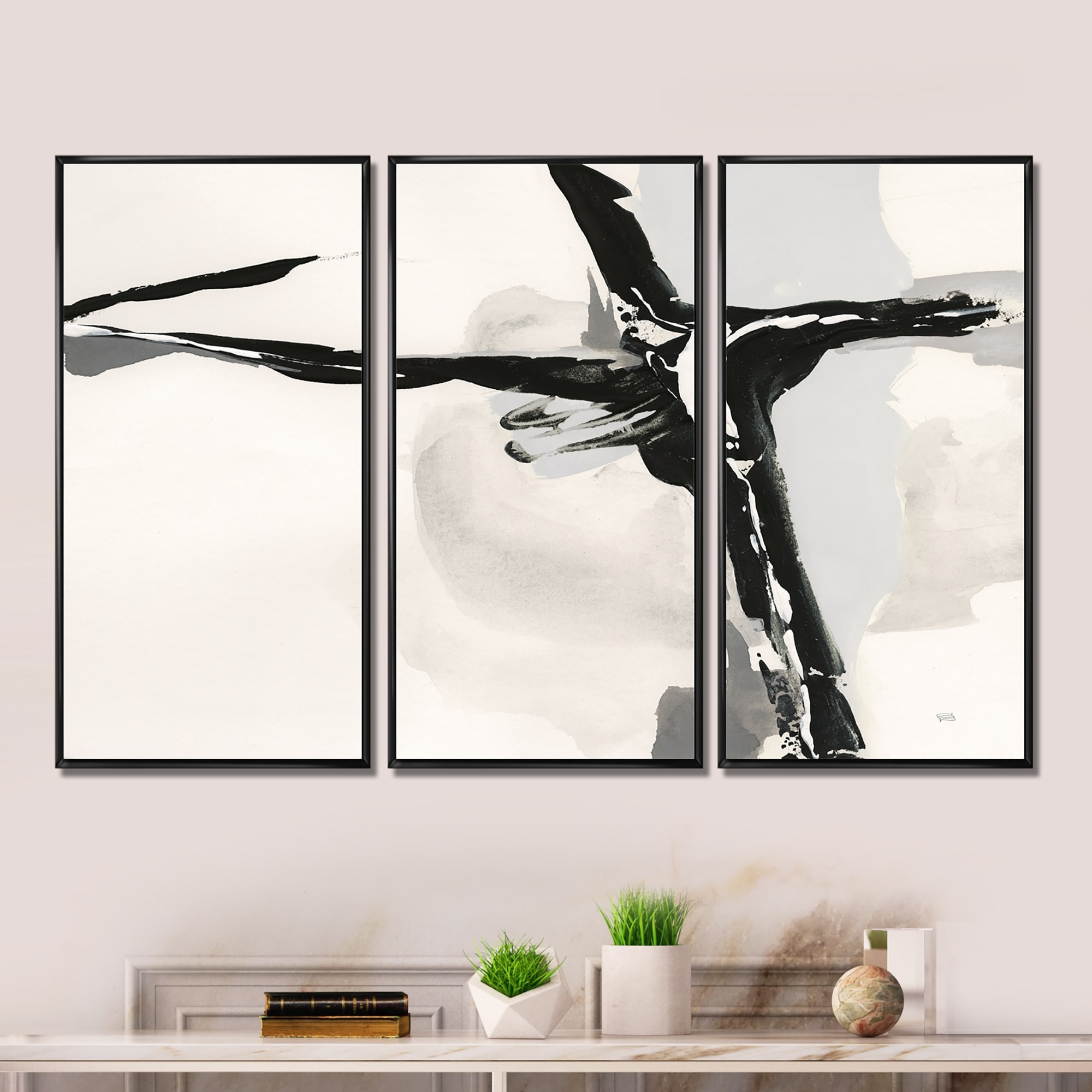 Designart "Abstract Neutral II" Mid-Century Modern Framed Artwork Set of 3 - 4 Colors of Frames