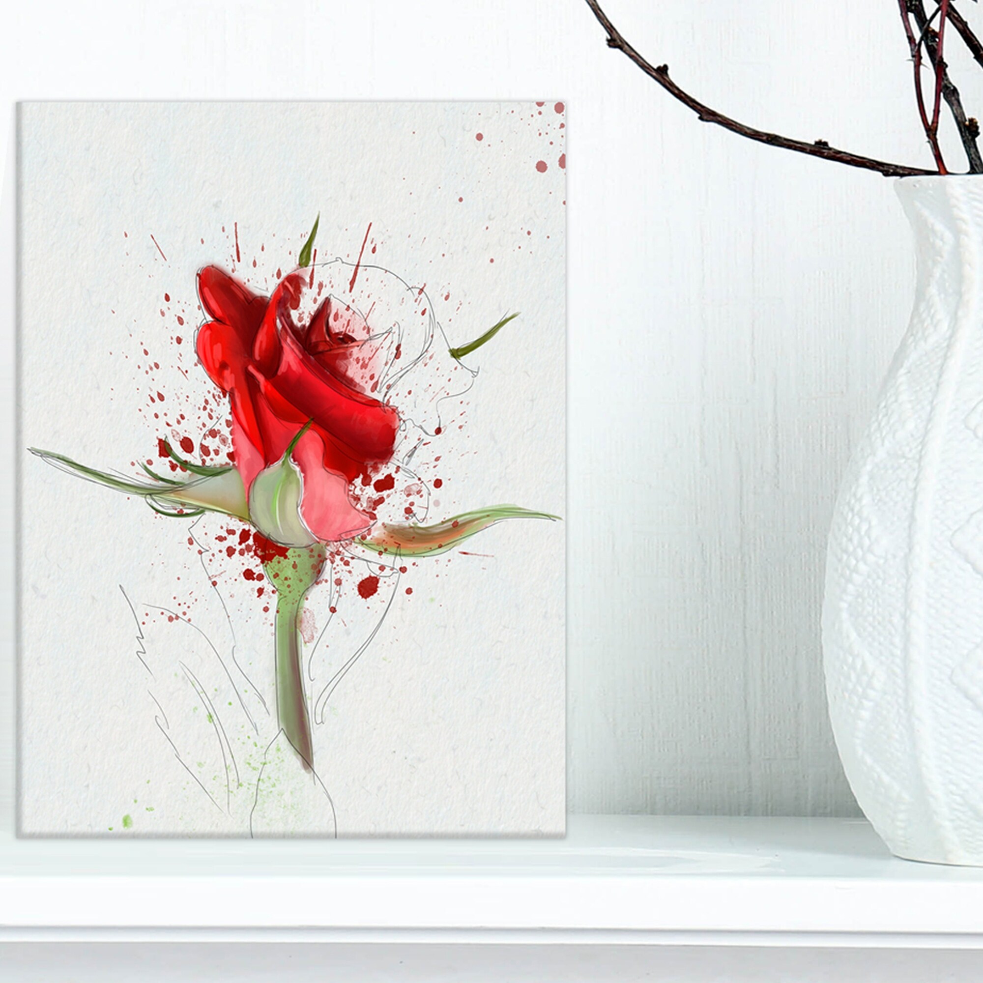 Designart "Bright Hand-drawn Red Rose Sketch" Modern Floral Canvas Wall Art
