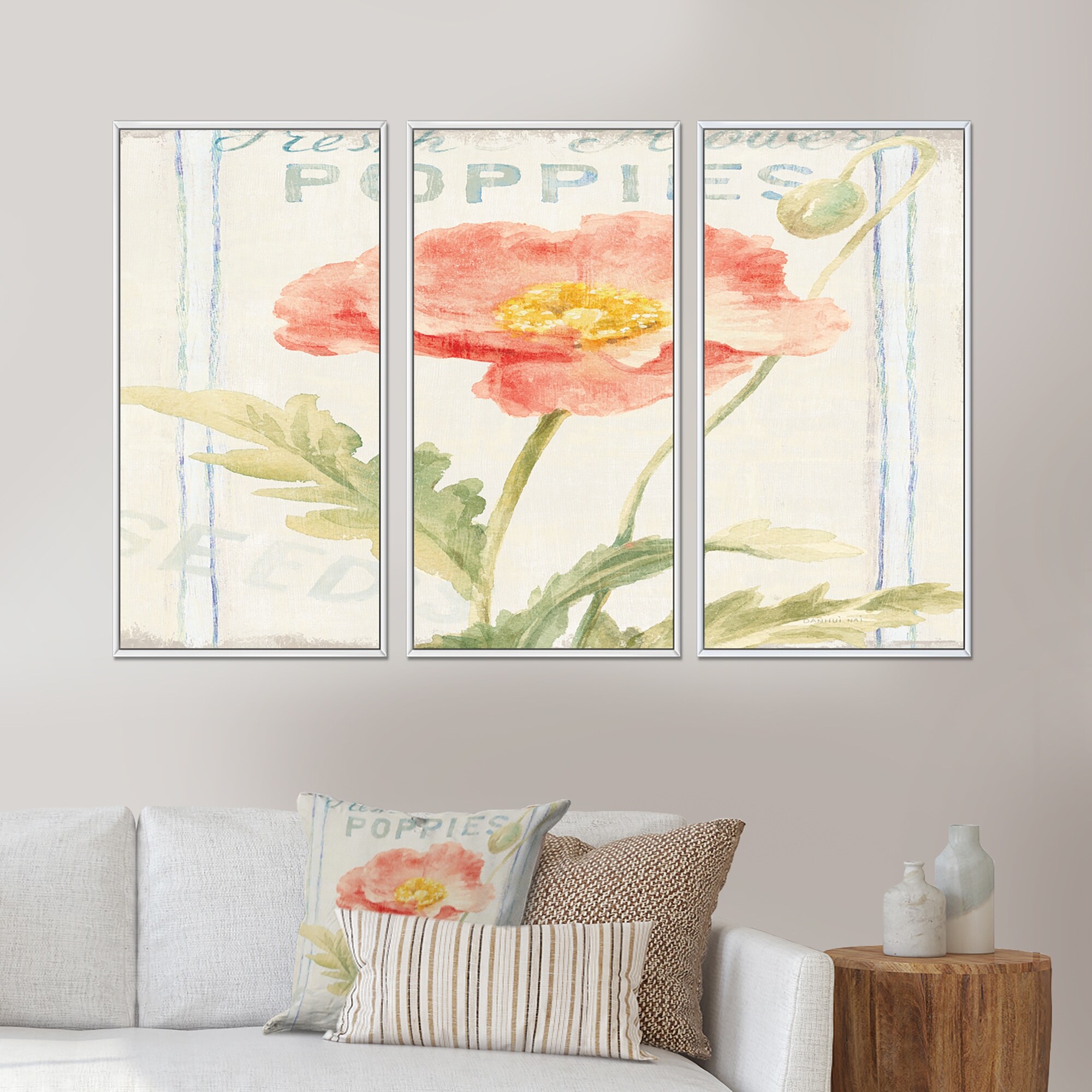 Designart "Floursack Florals IV" Farmhouse Framed Artwork Set of 3 - 4 Colors of Frames