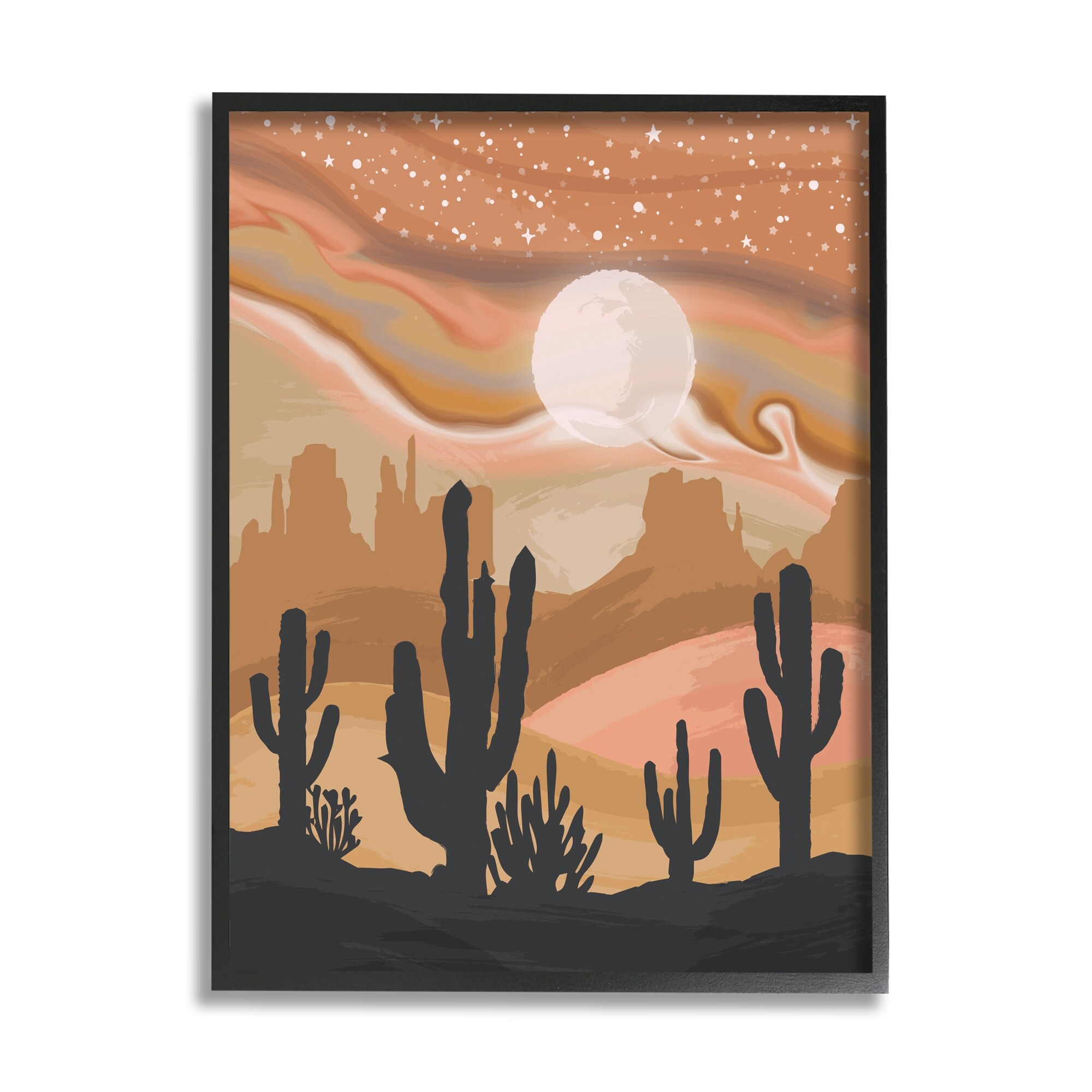 Stupell Cactus Canyon Sandstorm Landscape Lunar Borealis Starry Sky Framed Wall Art,Design by Lisa Perry Whitebutton - Brown