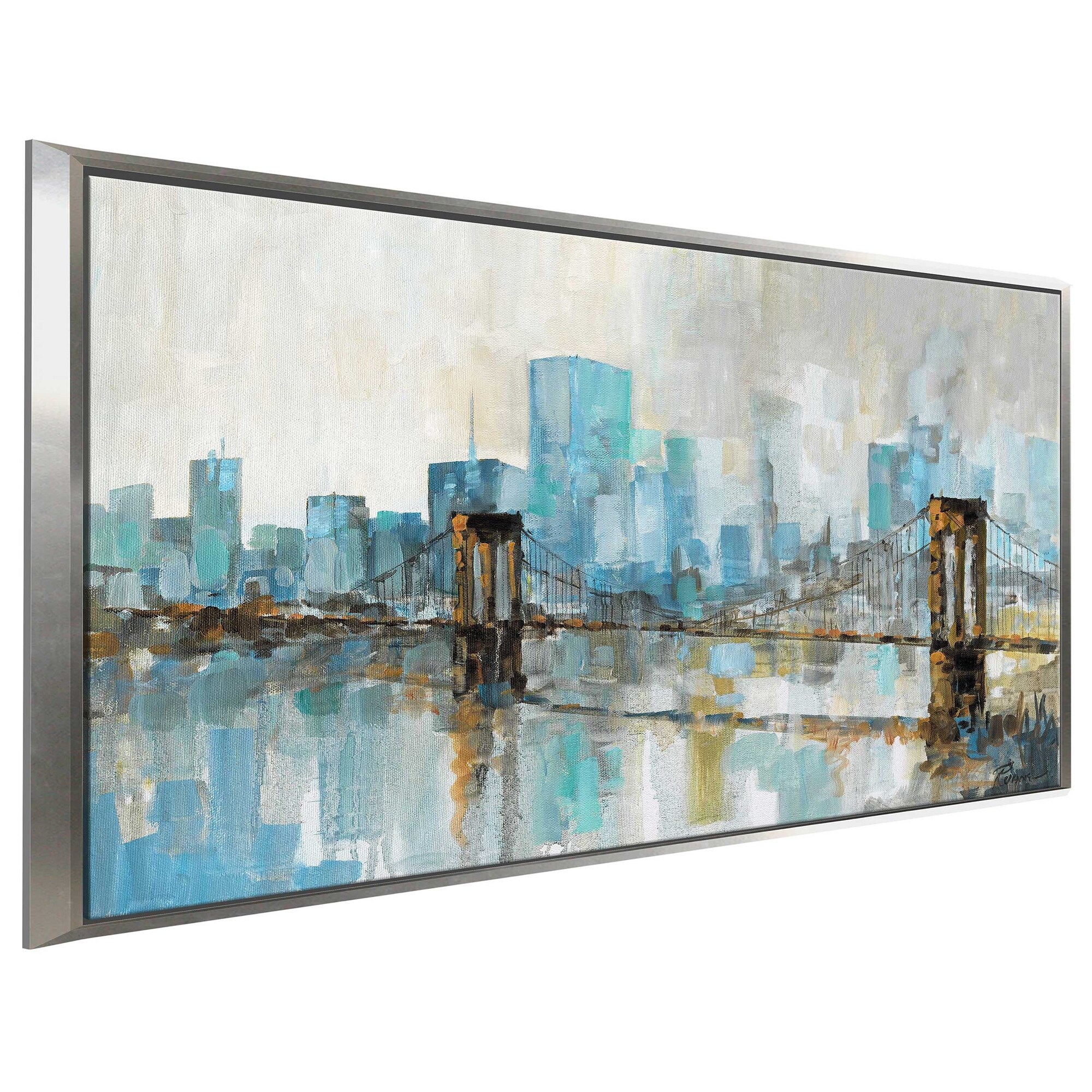 "Teal City Shadows " Print on Floating Canvas