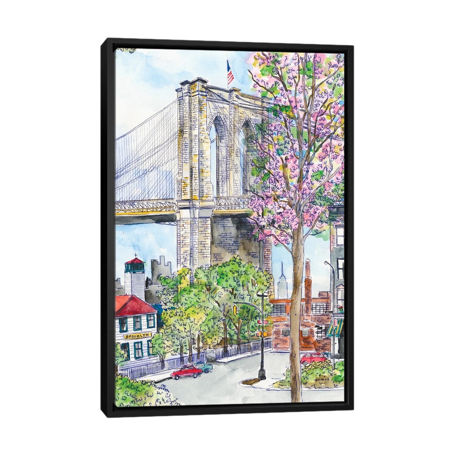 iCanvas "Brooklyn Bridge Spring" by Michael Storrings Framed Canvas Print
