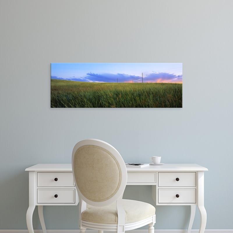 Easy Art Prints Panoramic Images's 'Grass in a field at sunset, Wyoming, USA' Premium Canvas Art