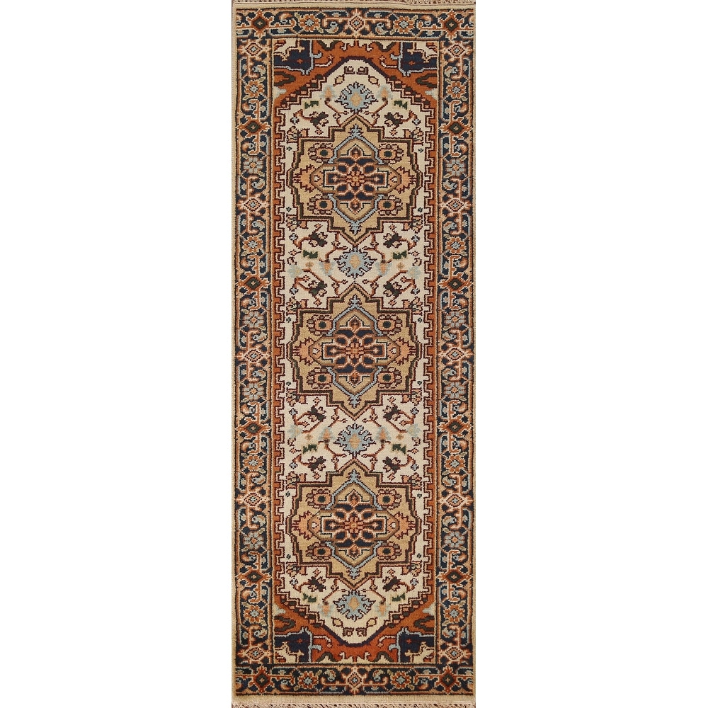 Geometric Heriz Staircase Runner Rug Wool Hand-knotted Oriental Carpet - 2'6" x 8'0"