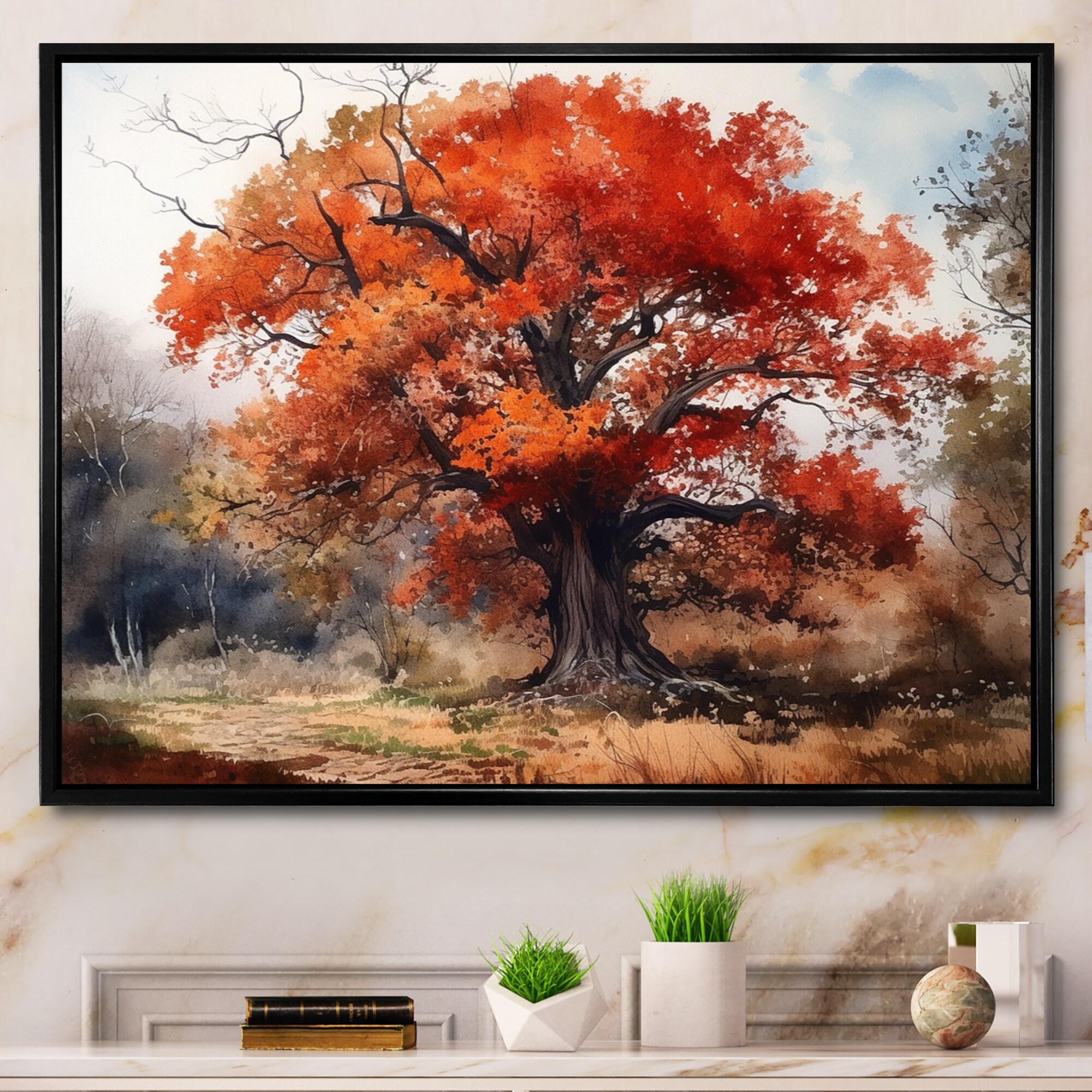 Designart "Fall Foliage Tree in the Woods I" Tree Floral Framed Canvas Art Print