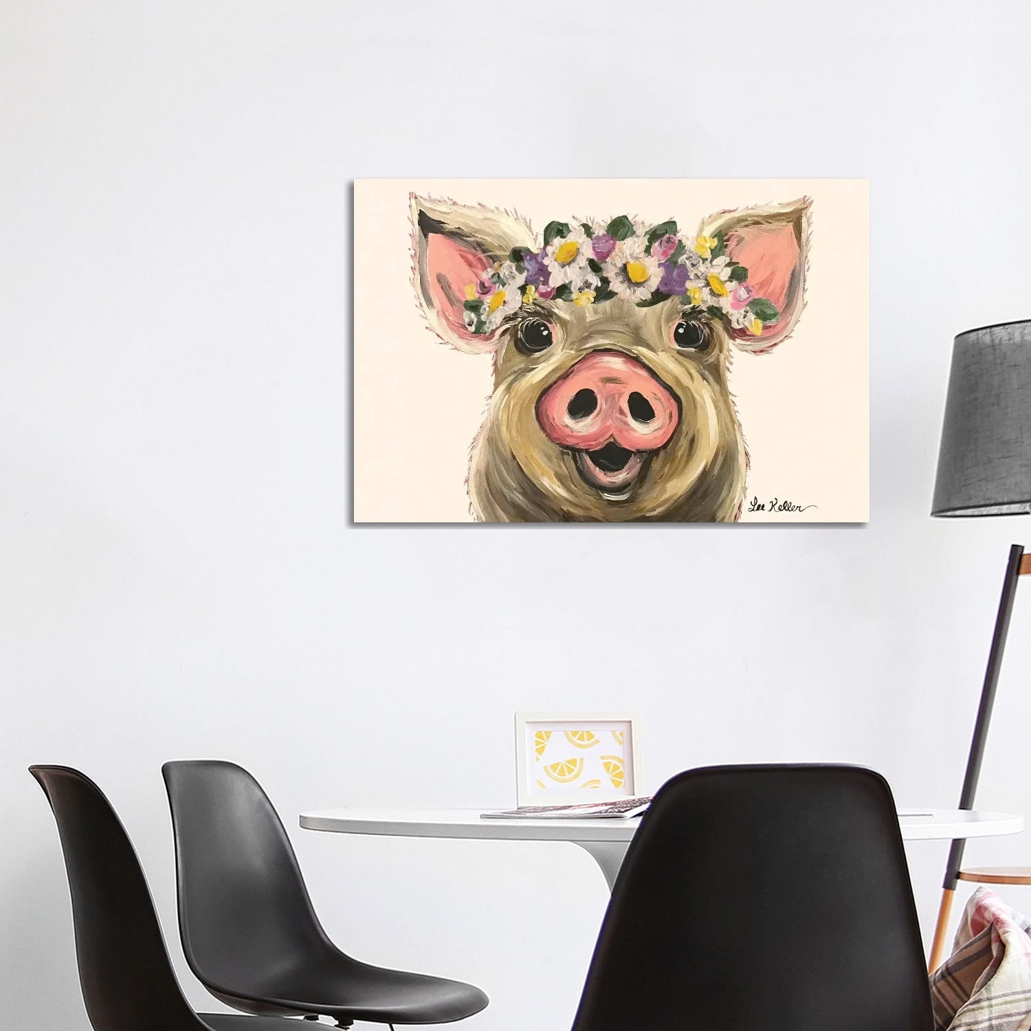 iCanvas "Pig With Flower Crown on Blush" by Hippie Hound Studios Canvas Print
