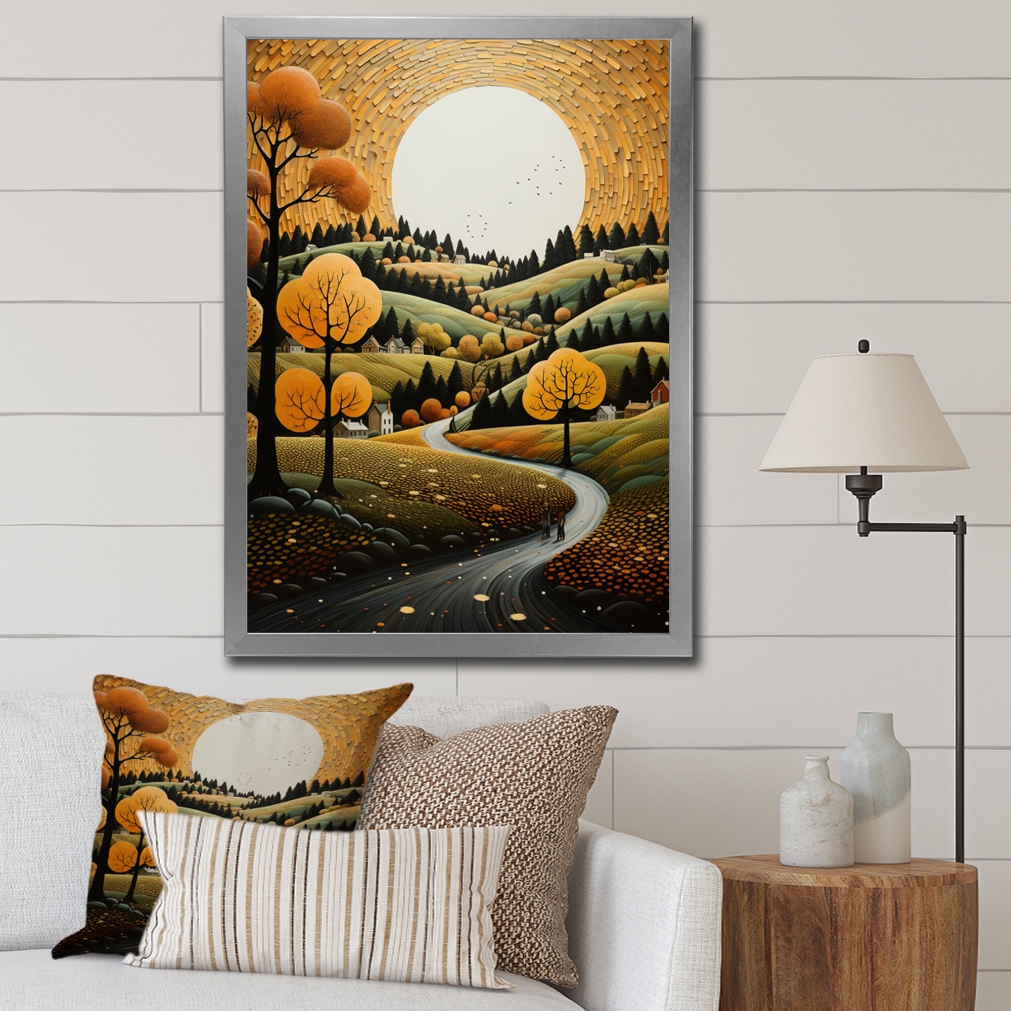 Designart "Countryside Reverie Pointillism V" Countryside Framed Canvas Wall Art